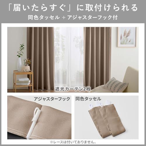 <届いたらすぐに取付けられる>アジャスターフックと同色のタッセルが付いている為、届いたらすぐに使用出来ます。※レースは付いておりません。