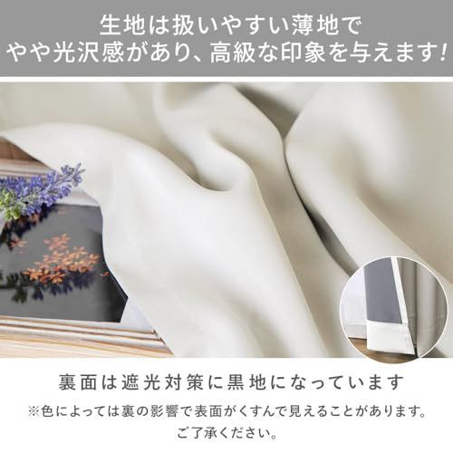 <生地>生地は扱いやすい薄地でやや光沢感があり、高級な印象を与えます!裏面は遮光対策に黒地になっています。※色によっては裏の影響で表面がくすんで見えることがあります。ご了承ください。