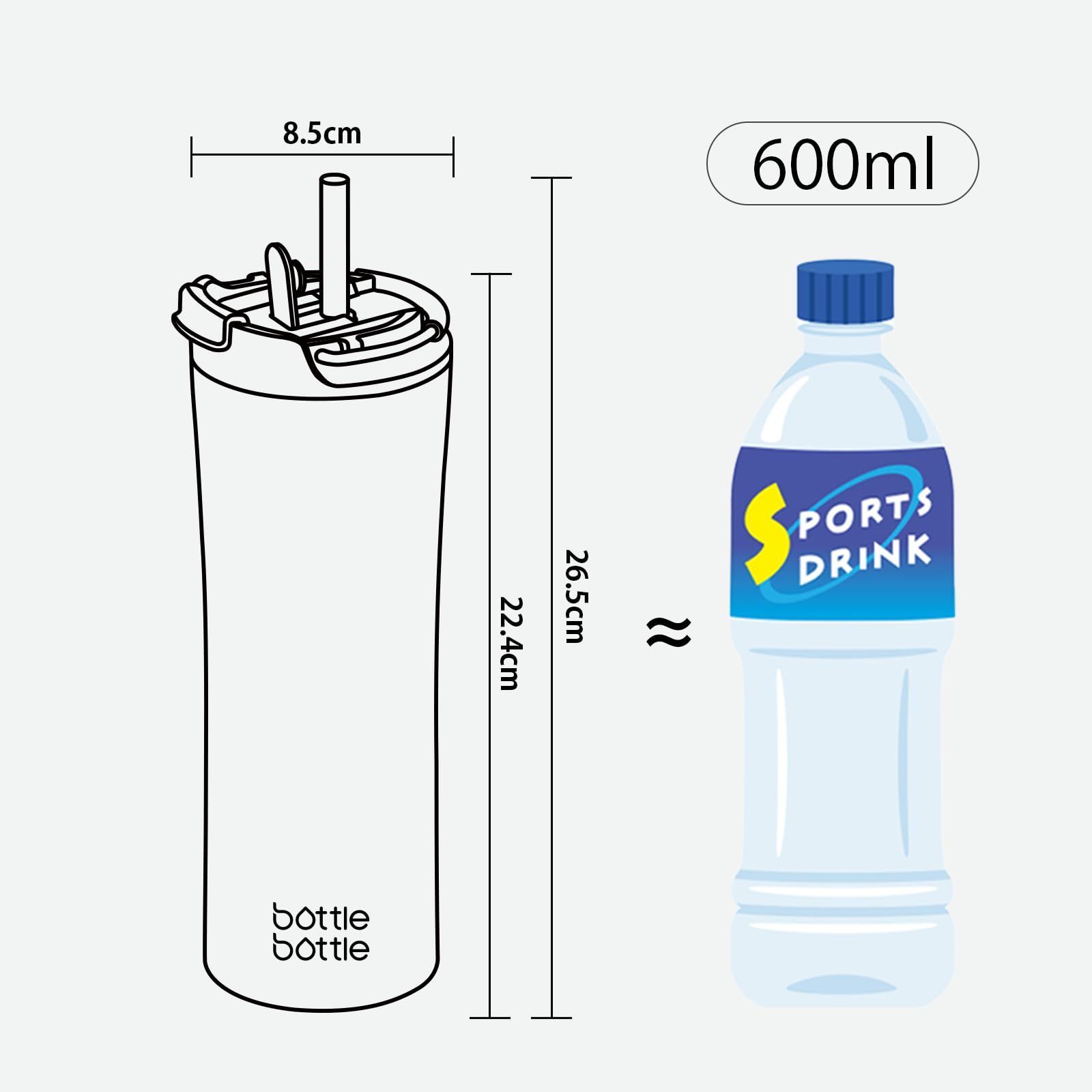 タンブラー 600ml水筒 真空 断熱 保温 保冷 ステンレス 穴あるフタ付き ストロー ボトル 濡れない 結露しない 持ち手付き 直飲み ピンク ブルー BOTTLE BOTTLE