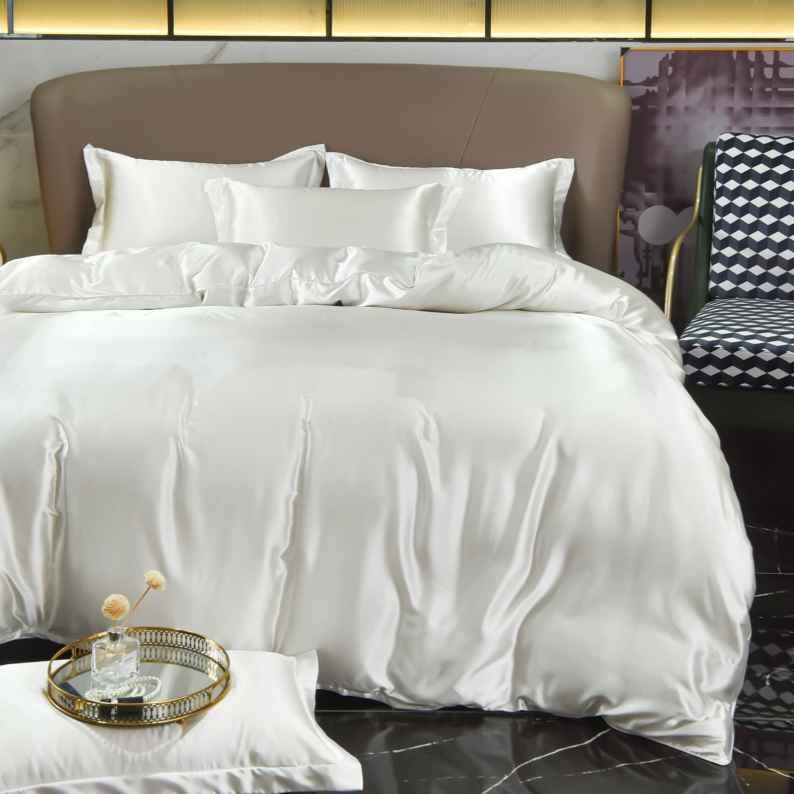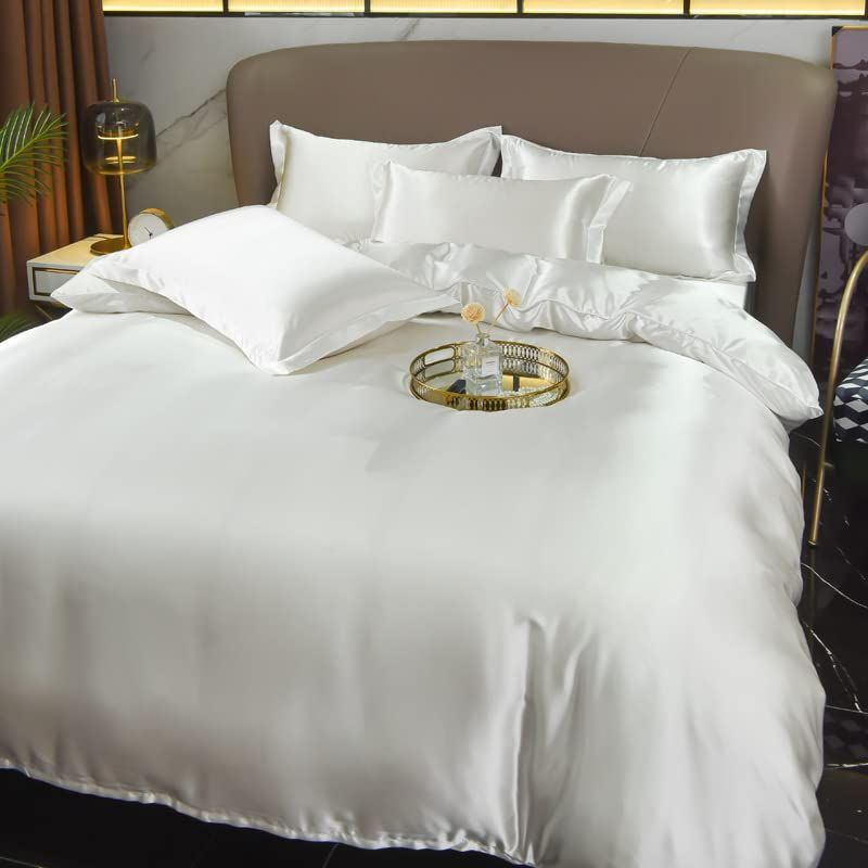 GraceVally Prime商品 布団カバー単品 掛け布団カバー 寝具カバー 冷感 かけ布団カバー ツルツル ふとんかばー 光沢 シルク 無地 おしゃれ シングル ホワイト