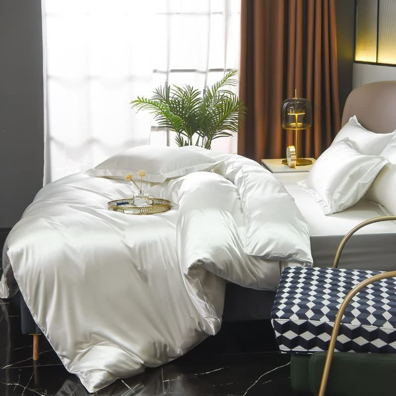 ふとんかばー ツルツル 光沢 かけ布団カバー シルク 冷感 無地 寝具カバー 掛け布団カバー おしゃれ 布団カバー単品 シングル Prime商品 ホワイト GraceVally