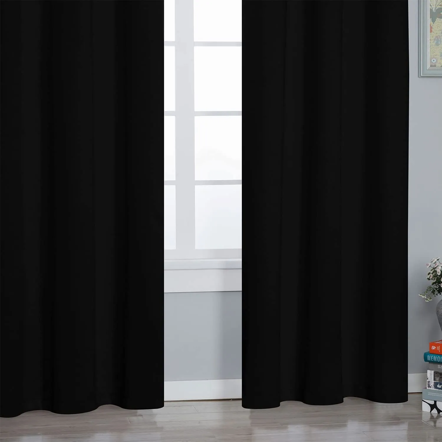 1級遮光カーテン 幅100cm 丈178cm ブラック 2枚入り ハトメ型 間仕切り 目隠し 防寒 保温 遮熱 断熱 冷気遮断 UVカット