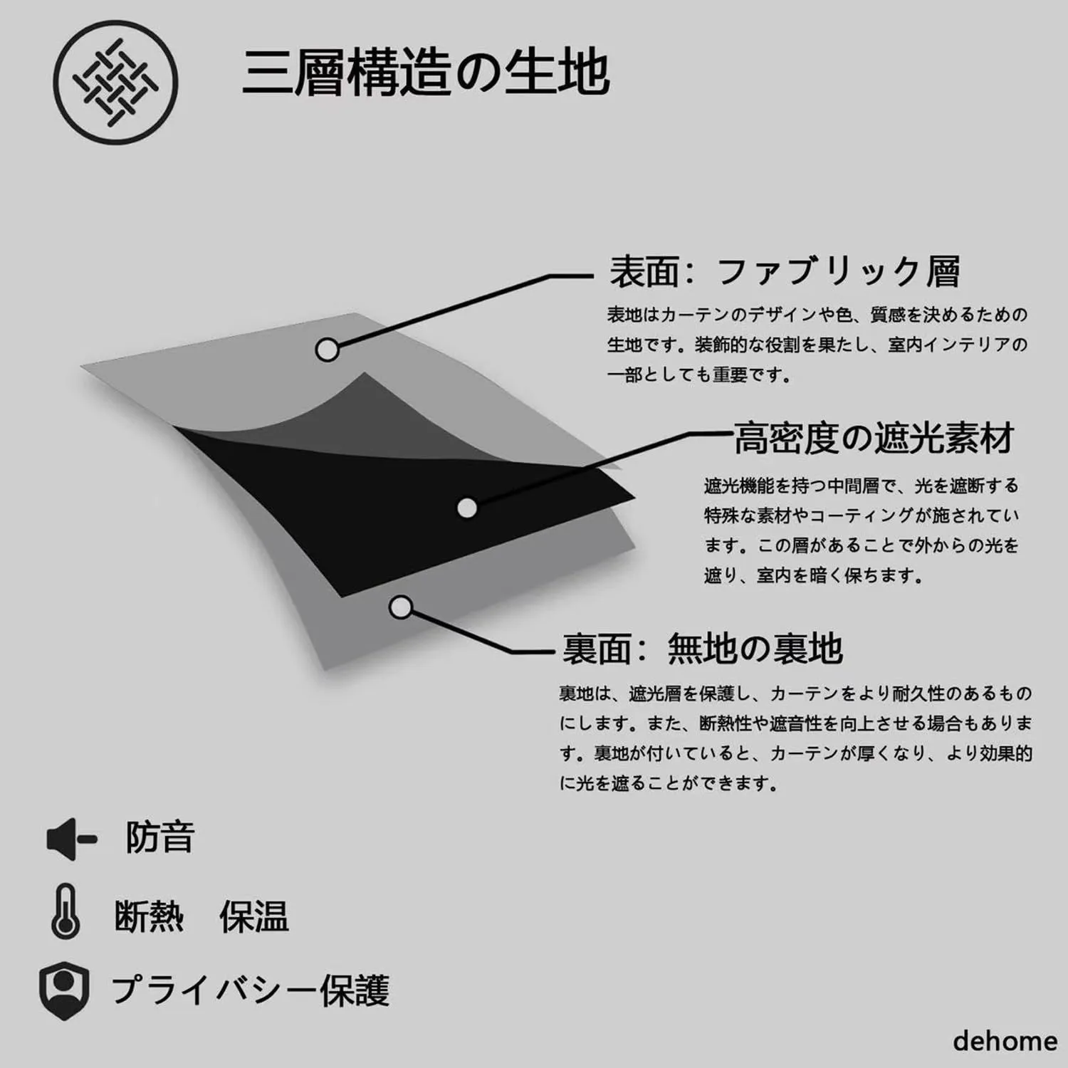 1級遮光カーテン(遮光率99.99%) 黒い遮光糸を三重織り込むため、日差しや紫外線などをしっかり遮られる機能付きの厚地カーテンです。(遮光性は暗いの方うが顕著です。)