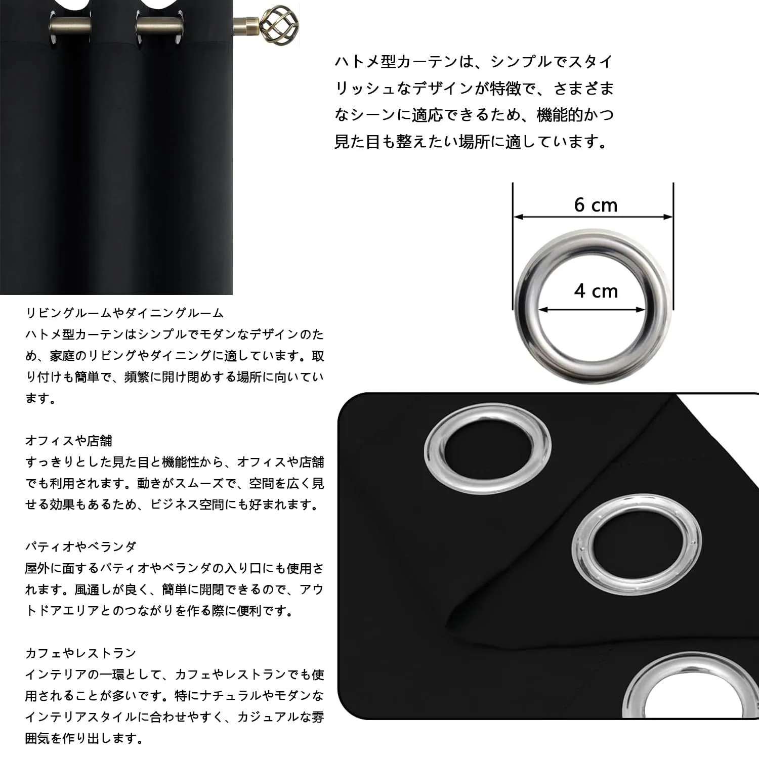 遮熱 保温 断熱 防寒 目隠し 間仕切り 冷気遮断 ハトメ型 2枚入り ブラック UVカット 丈178cm 幅100cm 1級遮光カーテン