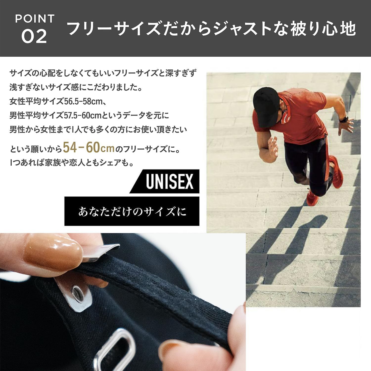 【調整可能なフリーサイズ】この帽子は、一般的な日本人の頭囲に基づき、55~60cmの調整可能範囲を設定。頭囲プラス1センチが理想のサイズとされており、この範囲であれば無段階に調整可能です。男女問わず使えるユニセックスサイズです。
