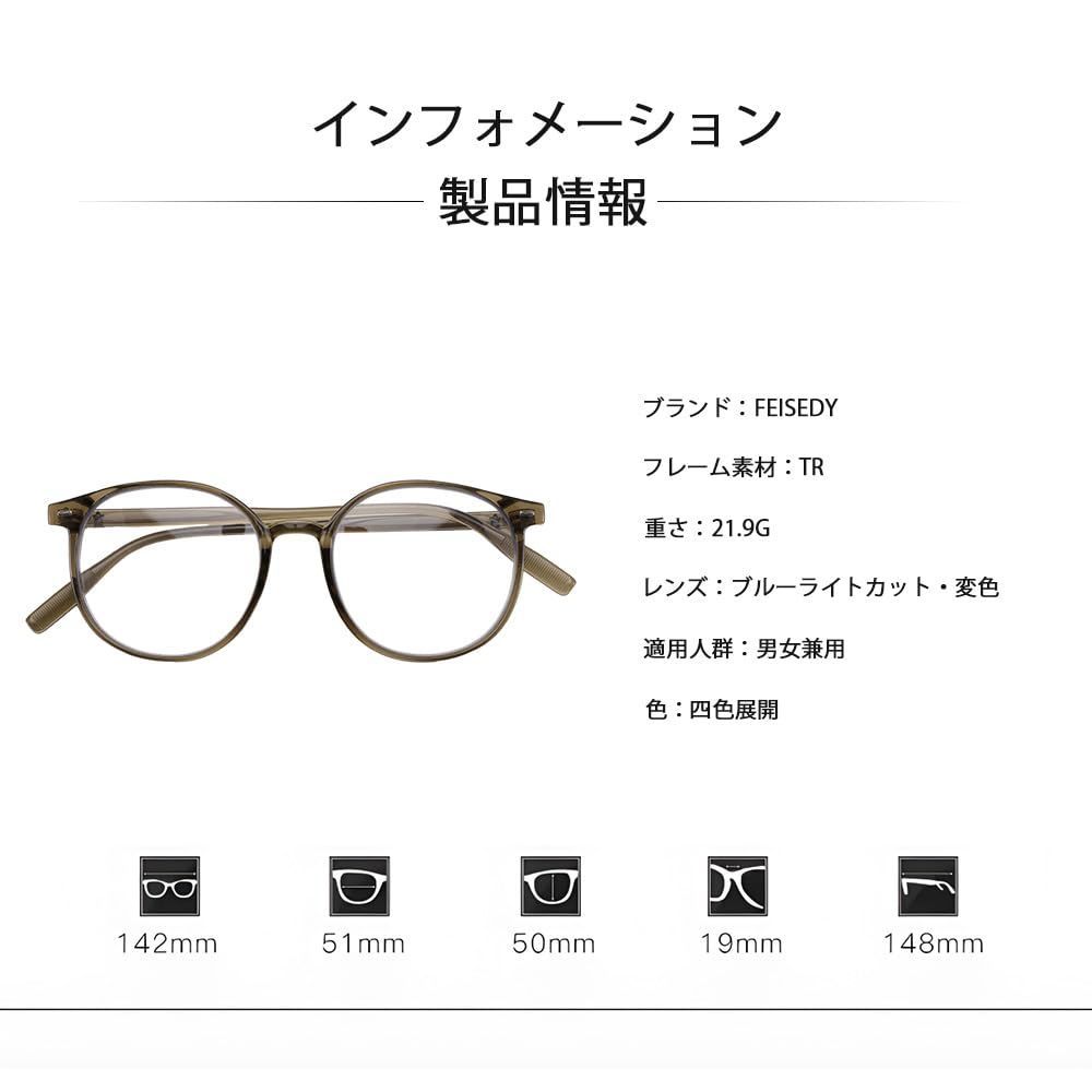 [FEISEDY] ブルーライトカット メガネ 伊達メガネ 度なし 調光レンズ 変色 パソコン用メガネ 超軽量 紫外線カット ウェリントン おしゃれ レディース メンズ B1238