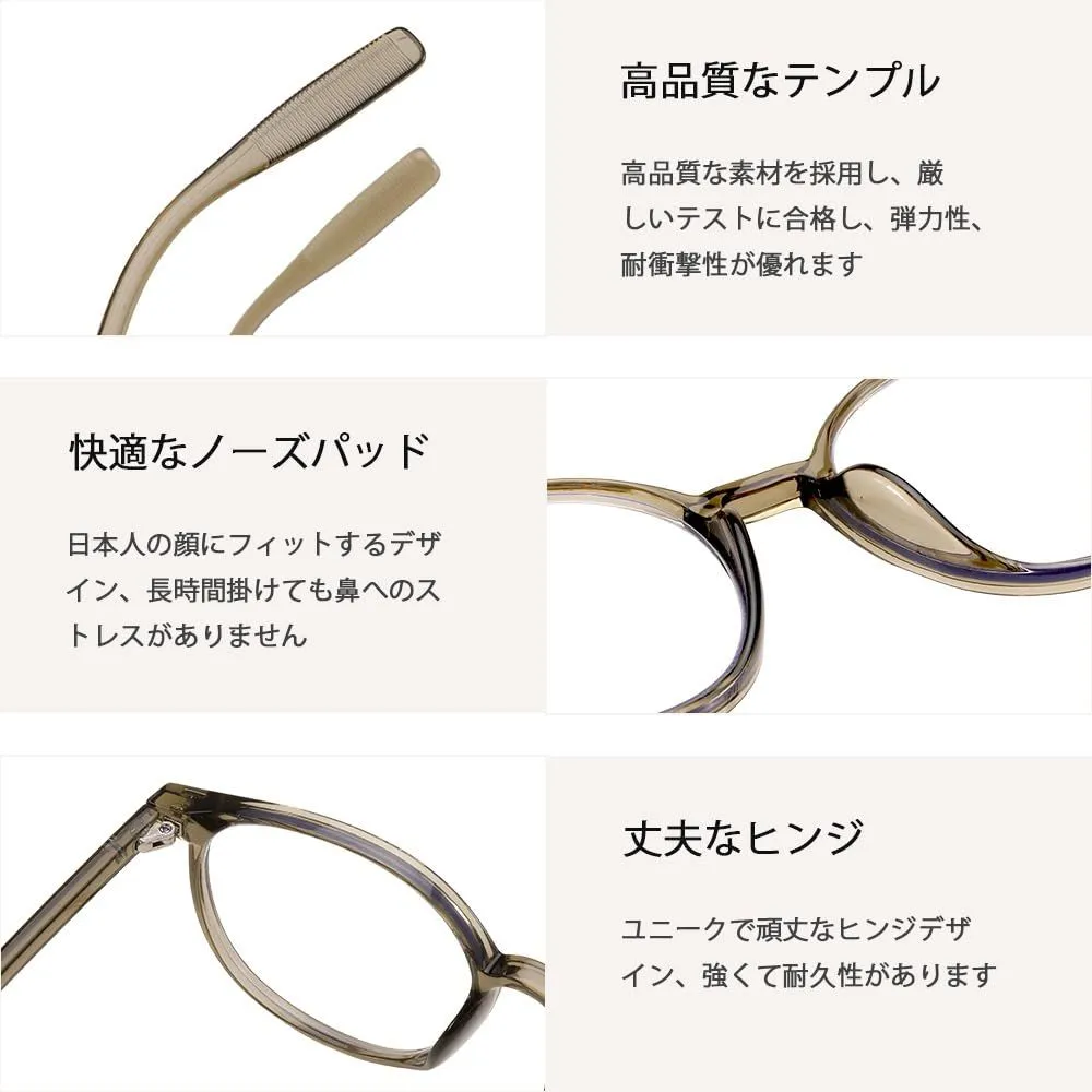 ブルーライト対策:ブルーライトカットレンズを採用され、デジタルデバイスなどから発生する有害なブルーライトをカットし、目の負担を減らします