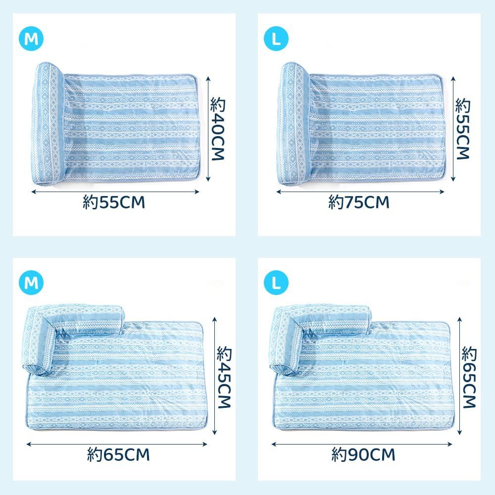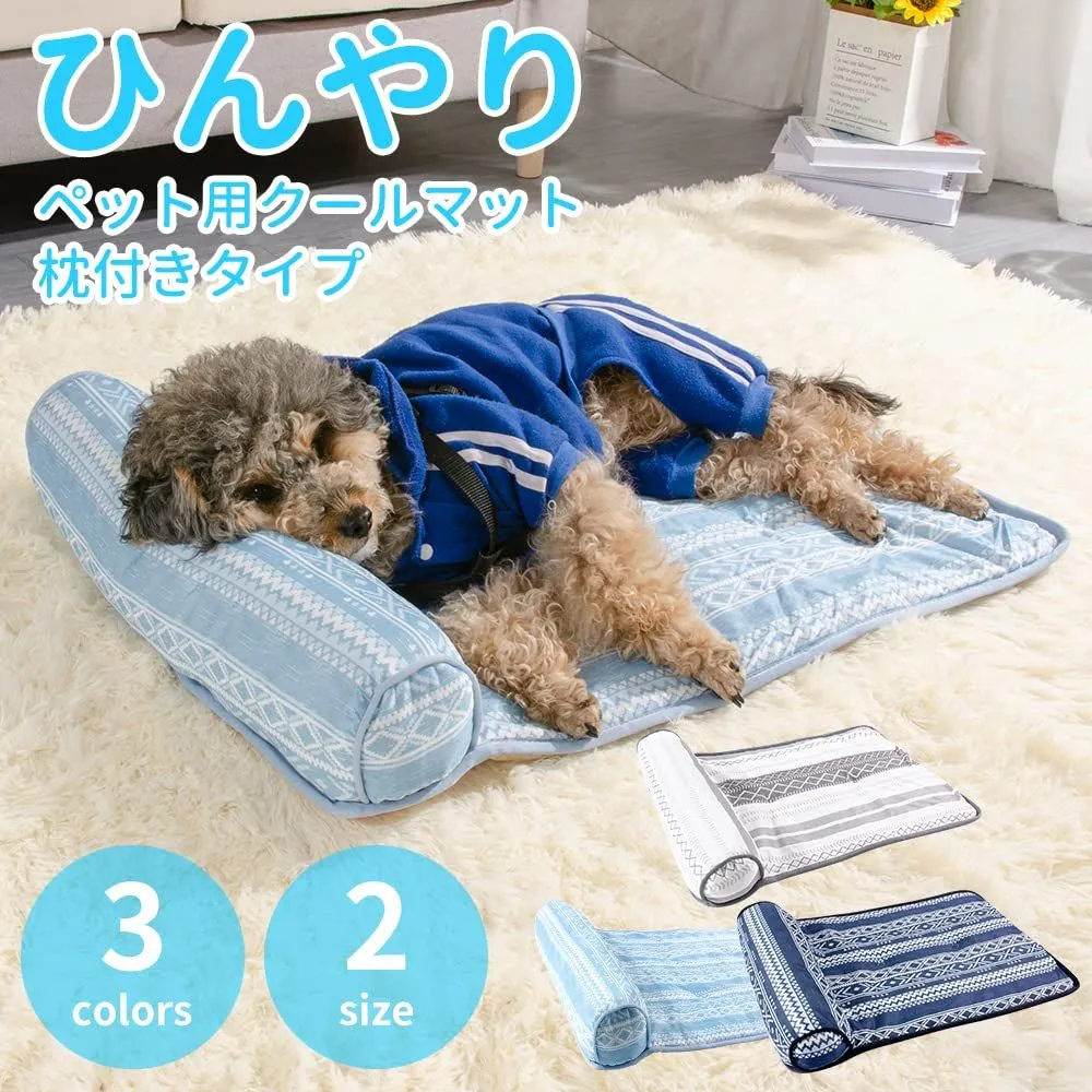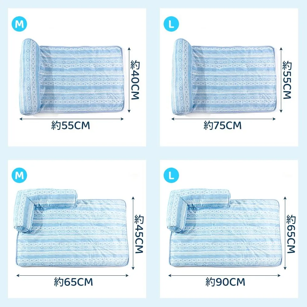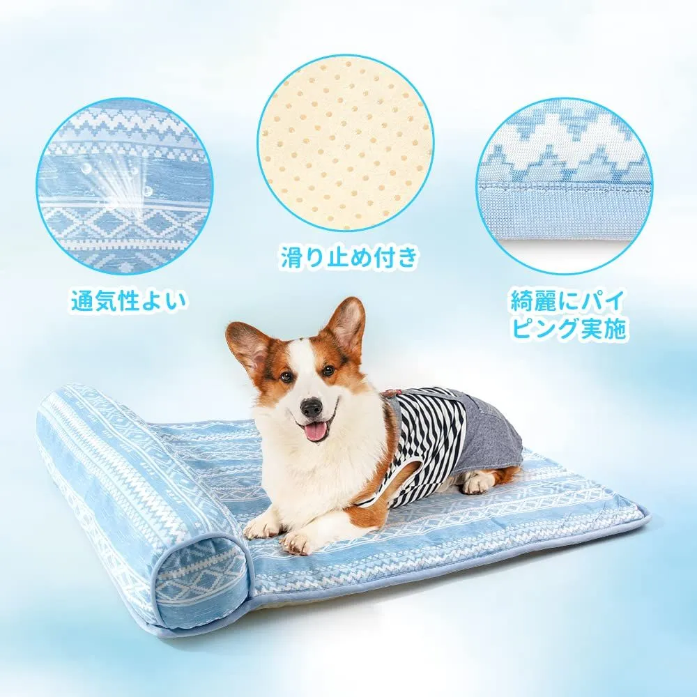 ソフトクールマット ペットごろ寝マット 夏用 ペット敷きパッド クールマット 暑さ対策 ペットシーツ ひんやり ペットベッド 軽量 接触冷感 涼しい 枕付きマット 快適 犬用 洗える 猫 キリム ペットマット ブルー Peto-Raifu 約55x40cm