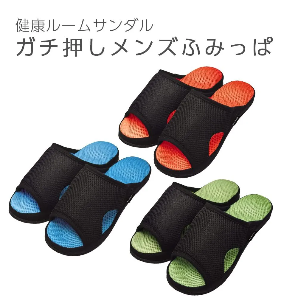 メンズふみっぱ グリーン ガチ押し健康ルームサンダル 足つぼ 25.0-27.0cm 健康スリッパ [アルファックス]