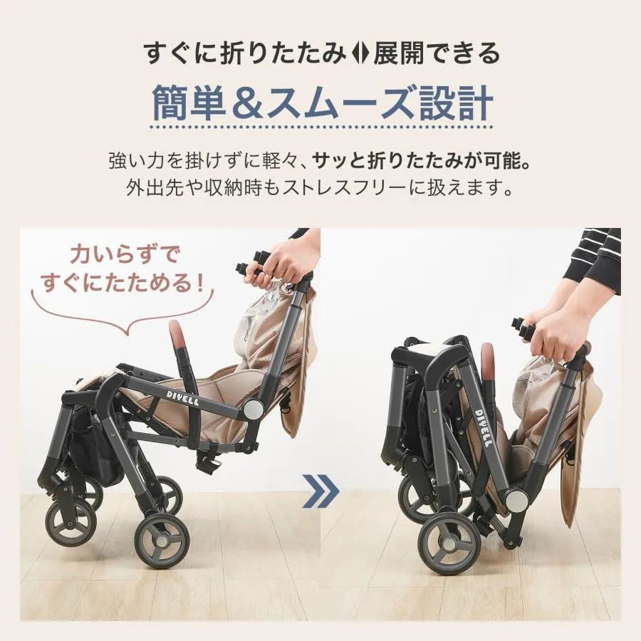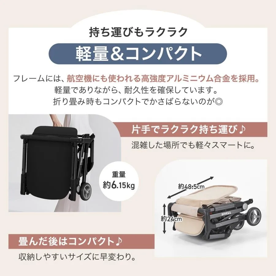 片手でサッと持ち運べるコンパクトな折りたたみベビーカー。