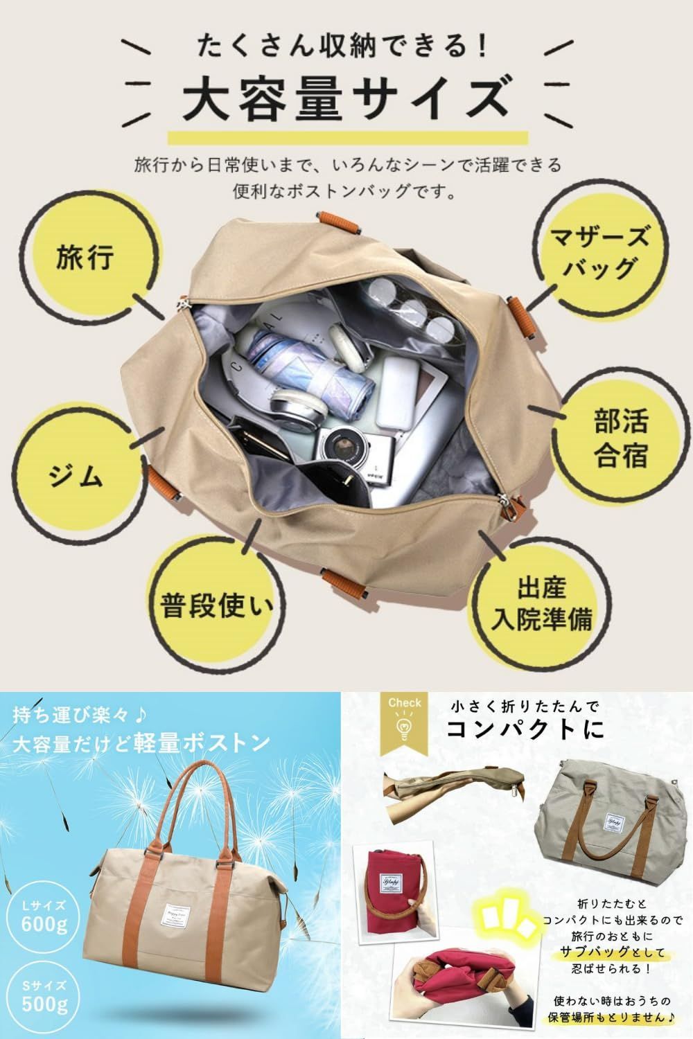 【新着商品】(ネイビー 2サイズ L M L) ボストンバック 旅行かばん 旅行バック 旅行カバン 2泊 1泊 男女共用 大容量 軽量 入院 出産 修学旅行 旅行 かわいい おしゃれ シンプル レディース キャリーオンバッグ ボストンバッグ 旅行バッグ