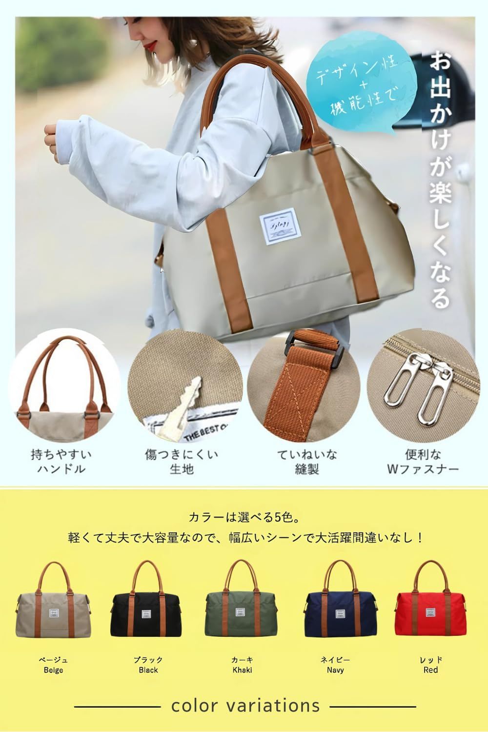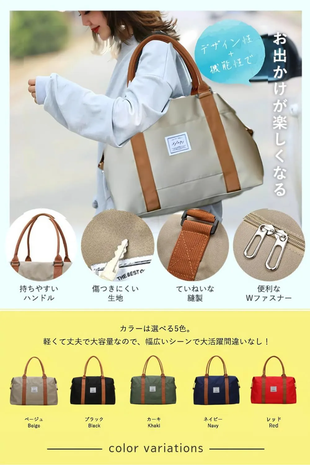 【撥水・耐傷】 耐久性が高く、撥水性のあるオックスフォード生地を採用しているので急な雨でも安心。傷や汚れもつきにくく、シワもできにくい生地。生地感は、カラーバリエーションの画像ページにアップ画像を載せておりますのでご参照ください。 ?