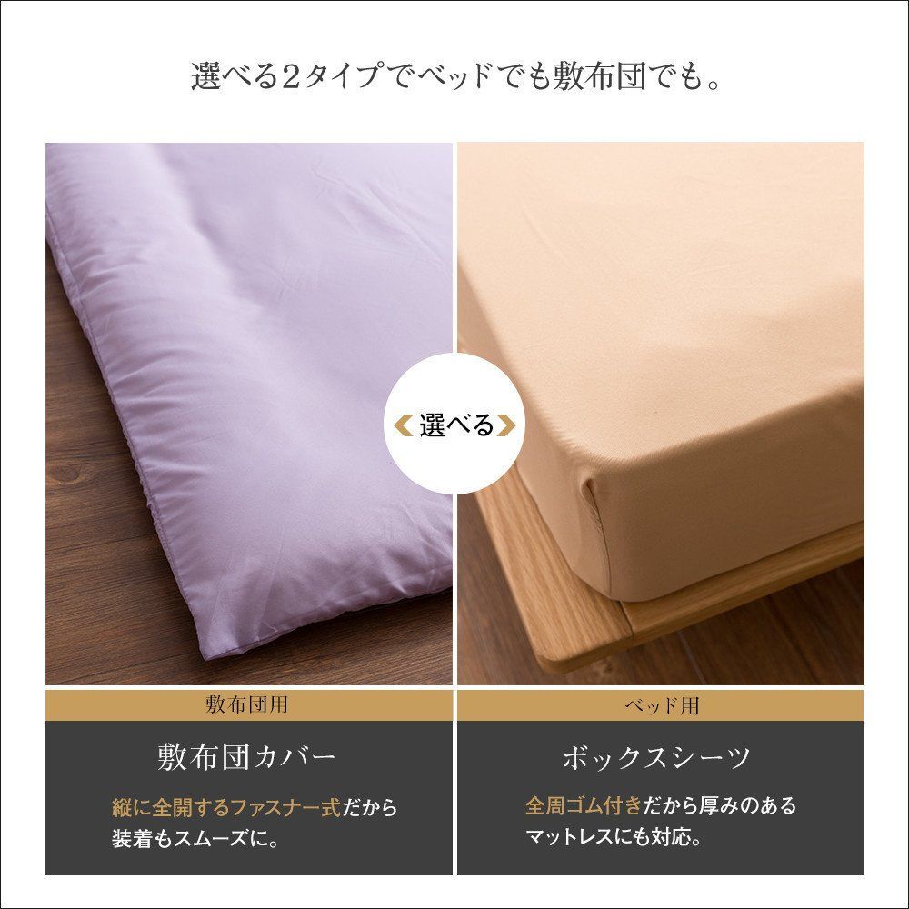 【ホテルタイプ 布団カバー3点セット】は、「部屋干し臭防止加工」をする事で、 梅雨でも、冬でも、天気を気にせず洗濯できます。 カラーバリエーションも豊富な12カラーをご用意。 どのカラーも品のあるカラーに仕上げました。 タイプは敷き布団用と、ベッド用の2種類をご用意いたしましたので、 今お使いの寝具に合わせてお選びください。 デザインだけではなく、使いやすさも考えた
