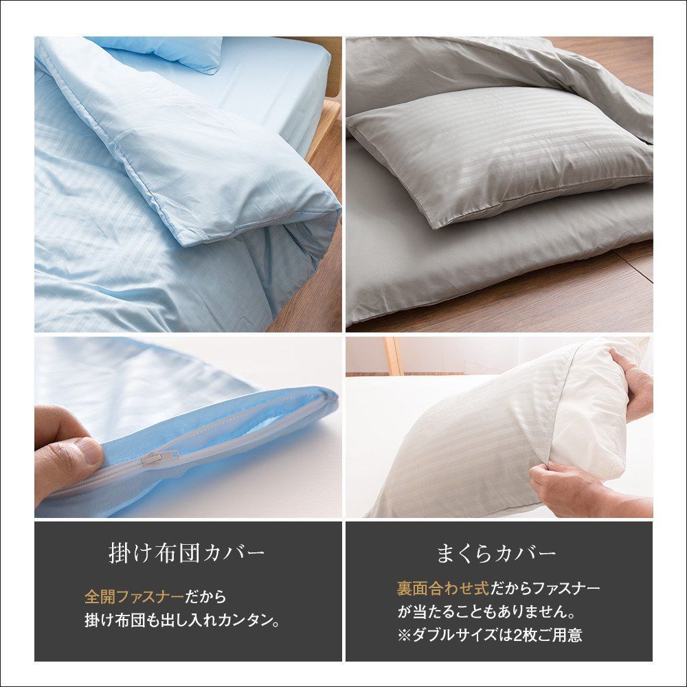 【ホテルタイプ 布団カバー3点セット】に変えて、 すっきり、模様替えしませんか? 3点セットだから、統一感のなかった寝室から一変。 まとまりがあり、高級感のある寝室へ。 今お使いの寝具が、ベッドでも、敷き布団でも、 ベッド用、敷き布団用、2タイプご用意いたしましたので、 あなたの寝室に合わせてお選びください。 こだわりは、見た目だけではありません。 お手入れが面倒な、寝具。 頻繁に洗えない方でも、安心してお使い頂けるように、 抗菌防臭加工をプラスしました。 また、天気のタイミングを見てからじゃないと出来ない、大物の洗濯。