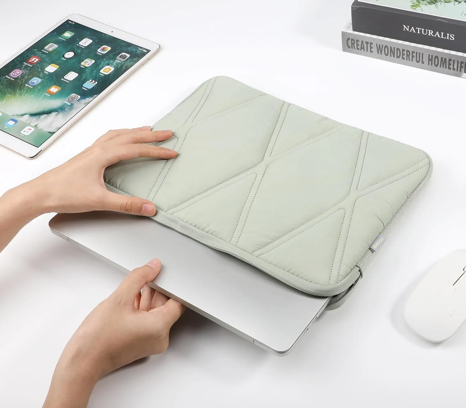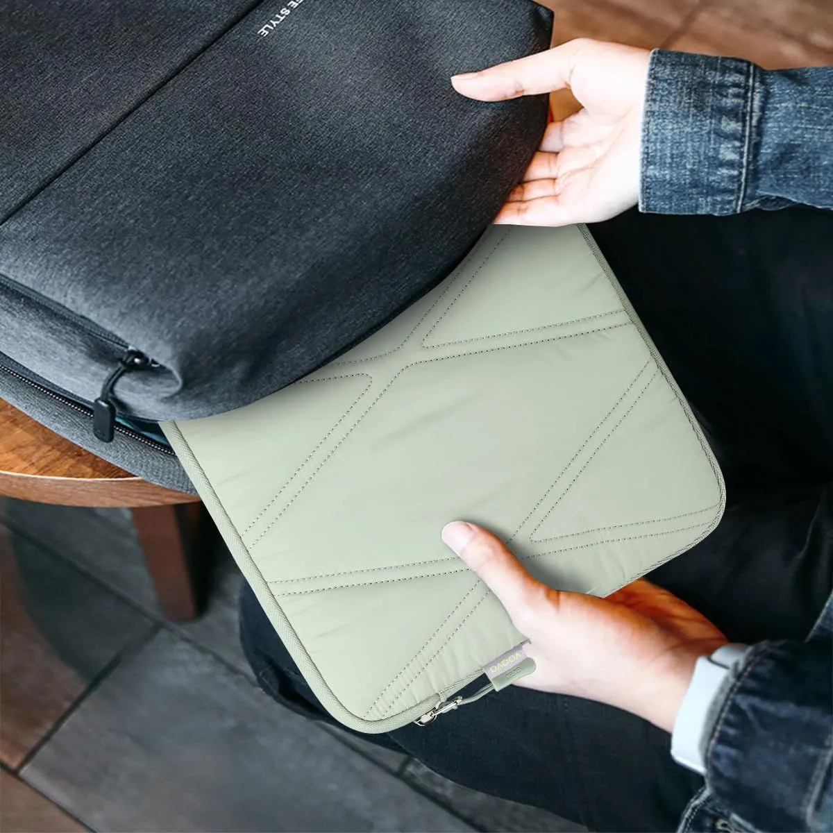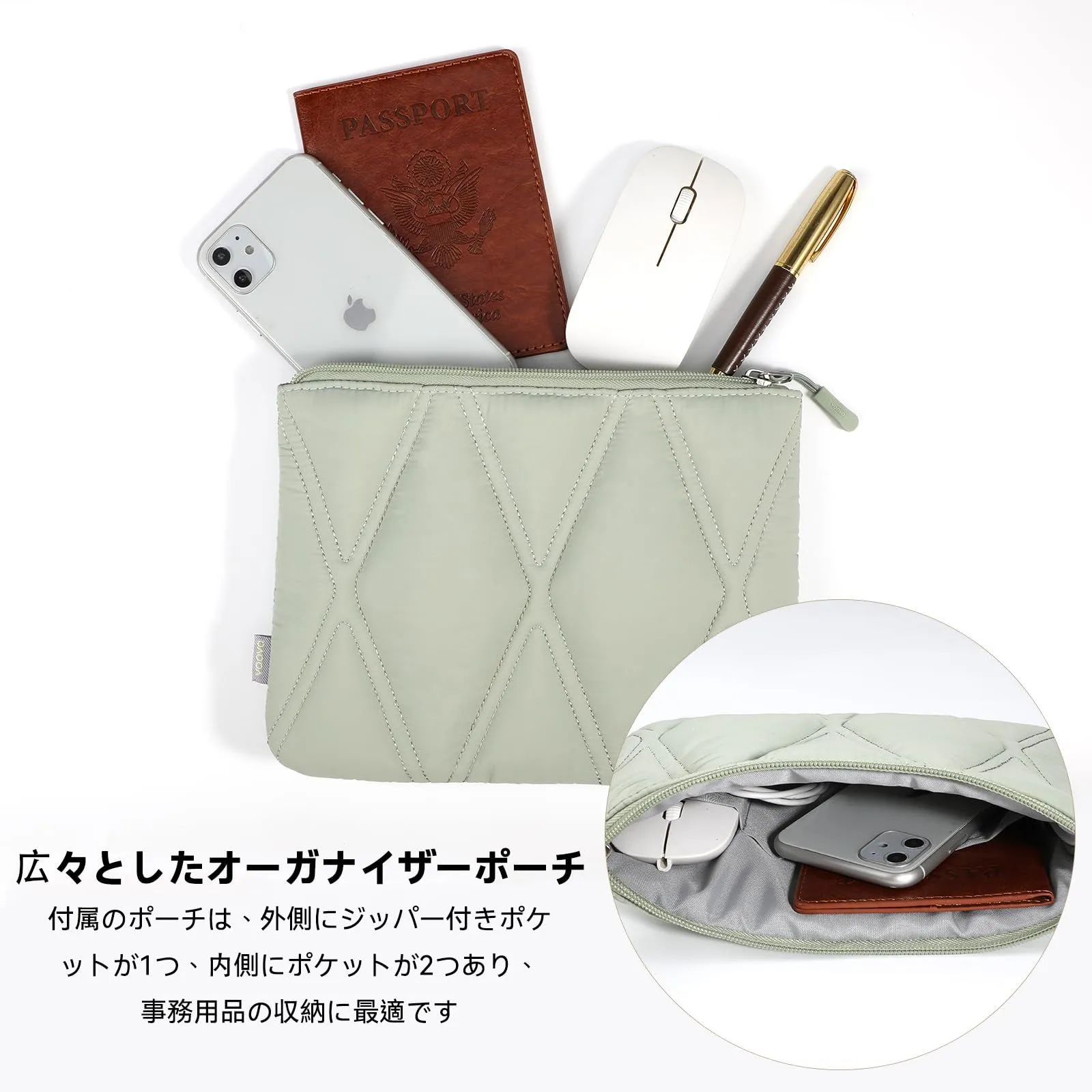 【ノートパソコンアクセサリーバッグ】このふんわりとしたシンプルでおしゃれなノートパソコンバッグには、同じ色調の小さなアクセサリーバッグが付属しており、内部には2つのポケットがあり、充電器、マウス、イヤホン、ペンなどに十分なスペースを提供します。ノートパソコンのスペースを圧迫せず、保護する役割も果たします。