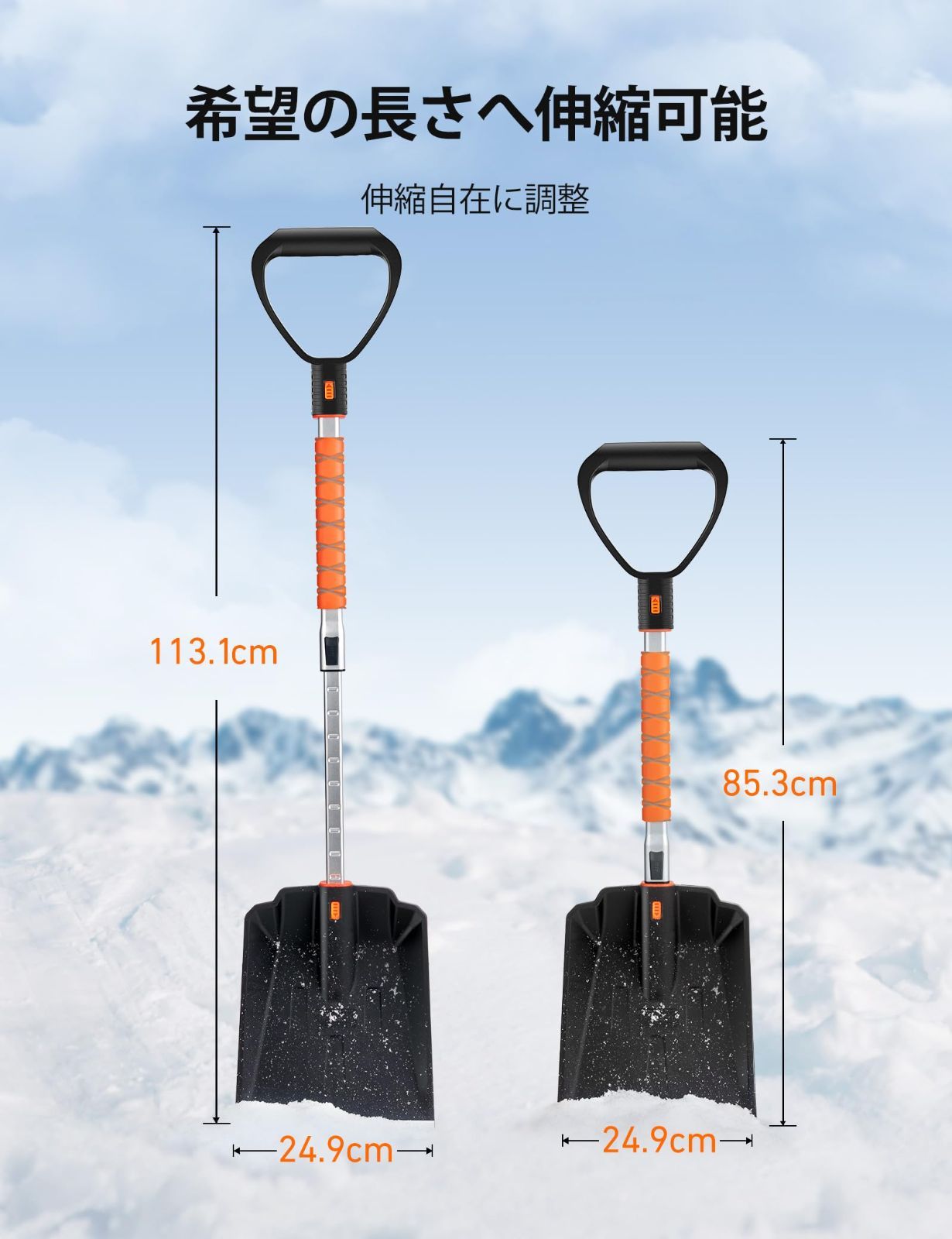 AstroAI 雪かきスコップ 85-113cm 除雪 組み立て式 車載スコップ スノーダンプ アルミニウム製伸縮式ハンドル ポータブル 多機能 泥除け