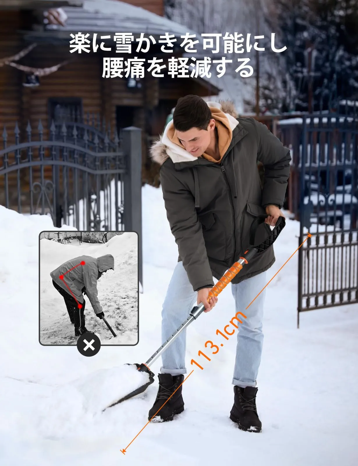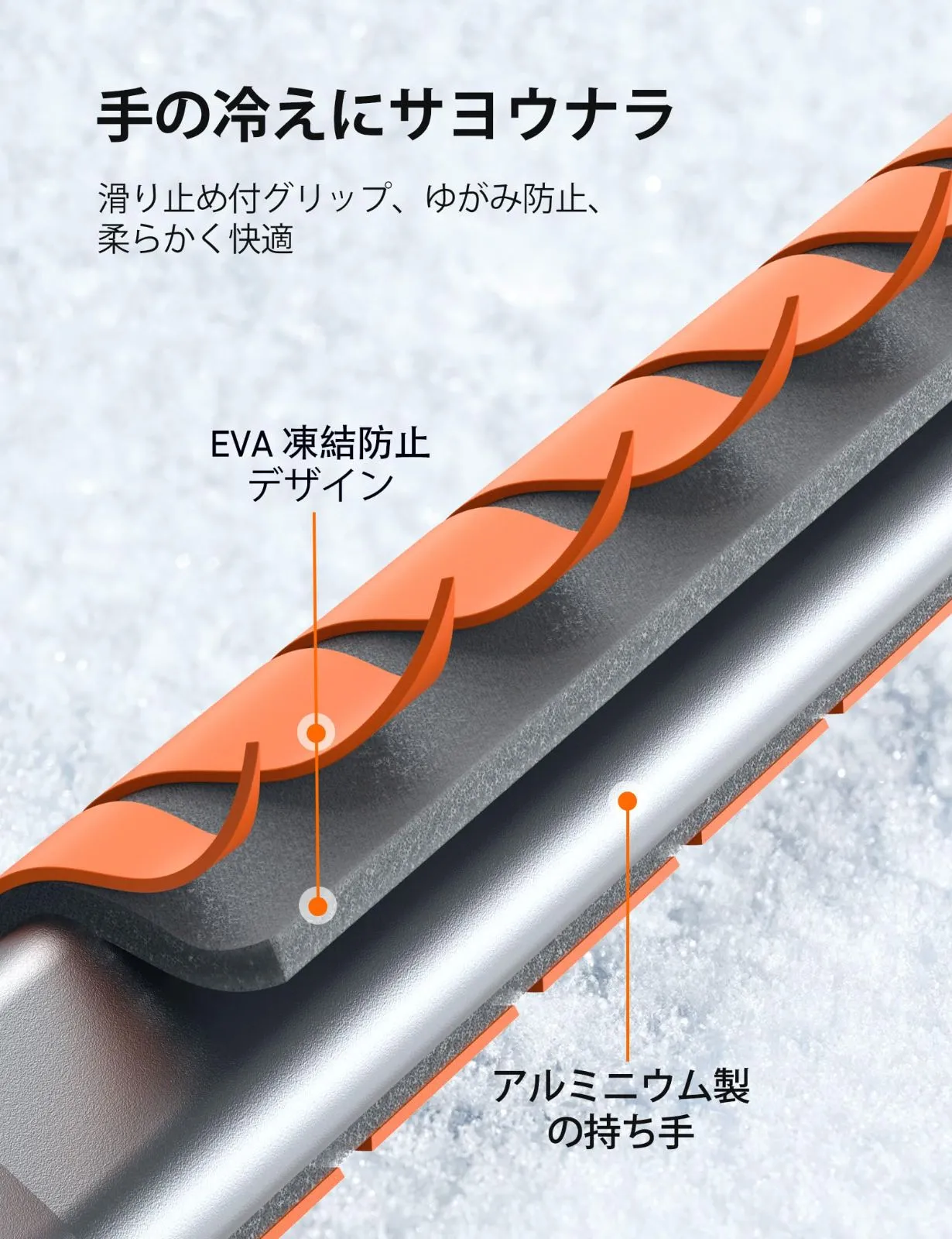 【人間工学に基づいた凍結防止EVAグリップ】EVAハンドルは、人間工学に基づいた滑り止めつきのデザインにより手の冷えを軽減し雪かきを楽に行える使用感をします。