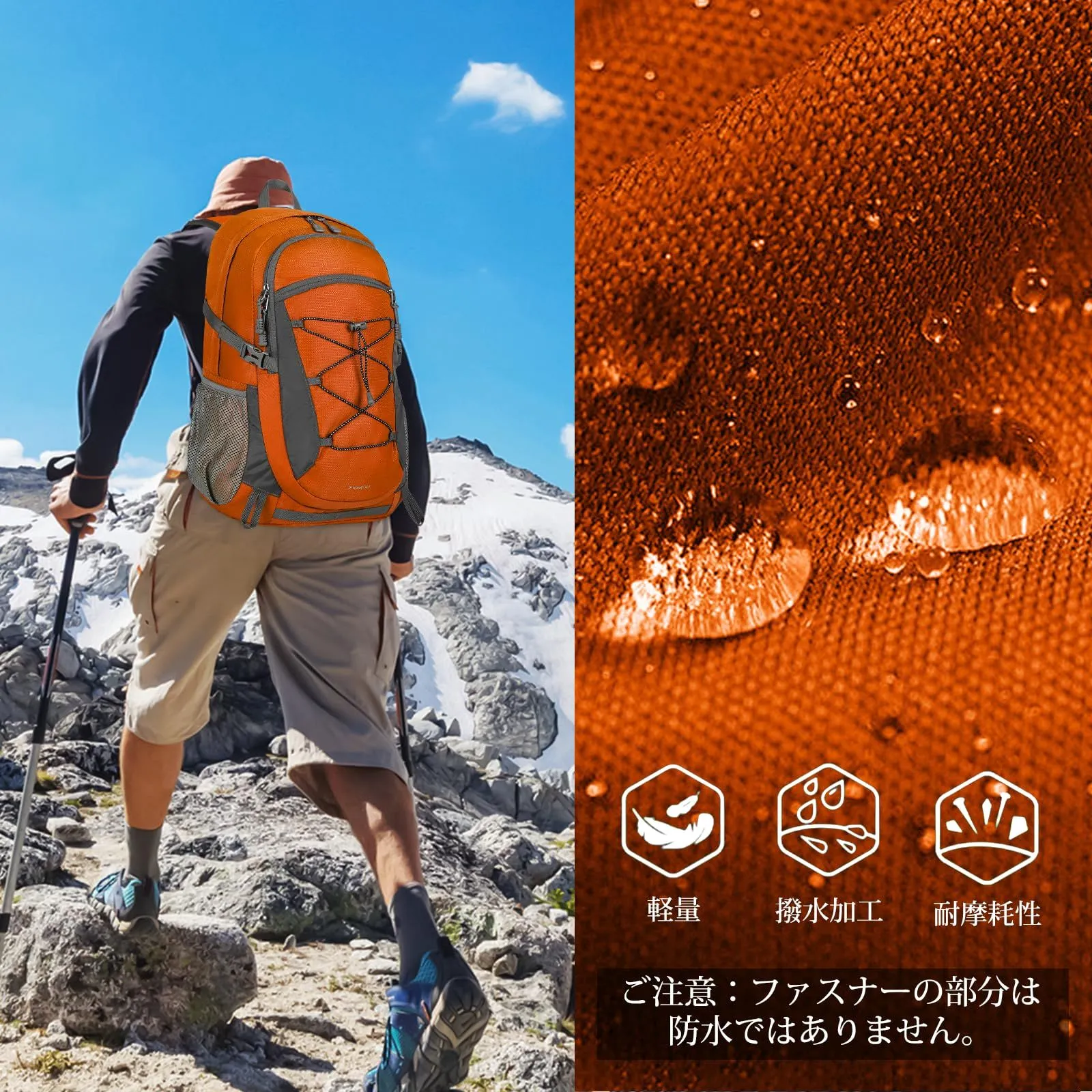 『耐摩耗防水』:この防水登山リュックは高品質耐引裂きナイロン生地で作られ、長持ちします。頑丈なSBSファスナーと補強継ぎ目がこの登山リュックにより良い使用体験を提供し、破裂の心配なく重い物体を運ぶことができます。