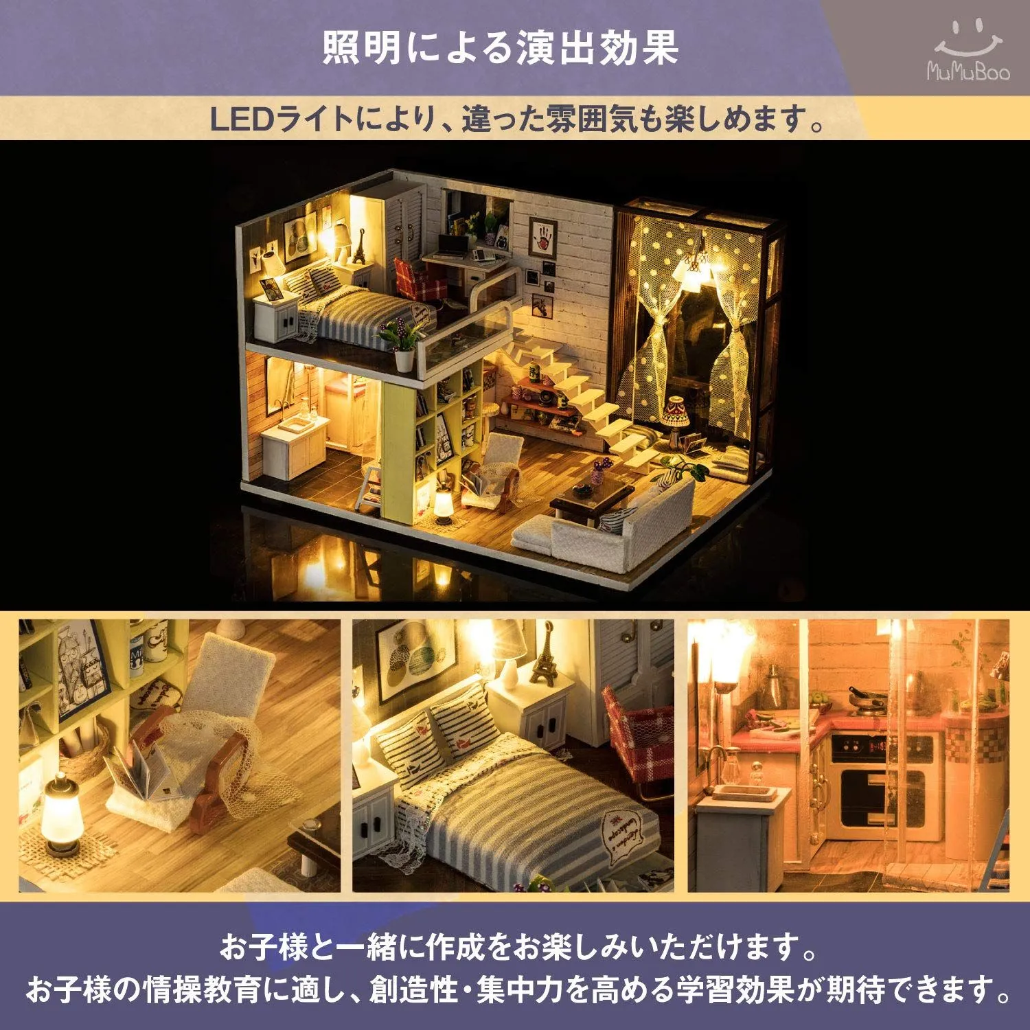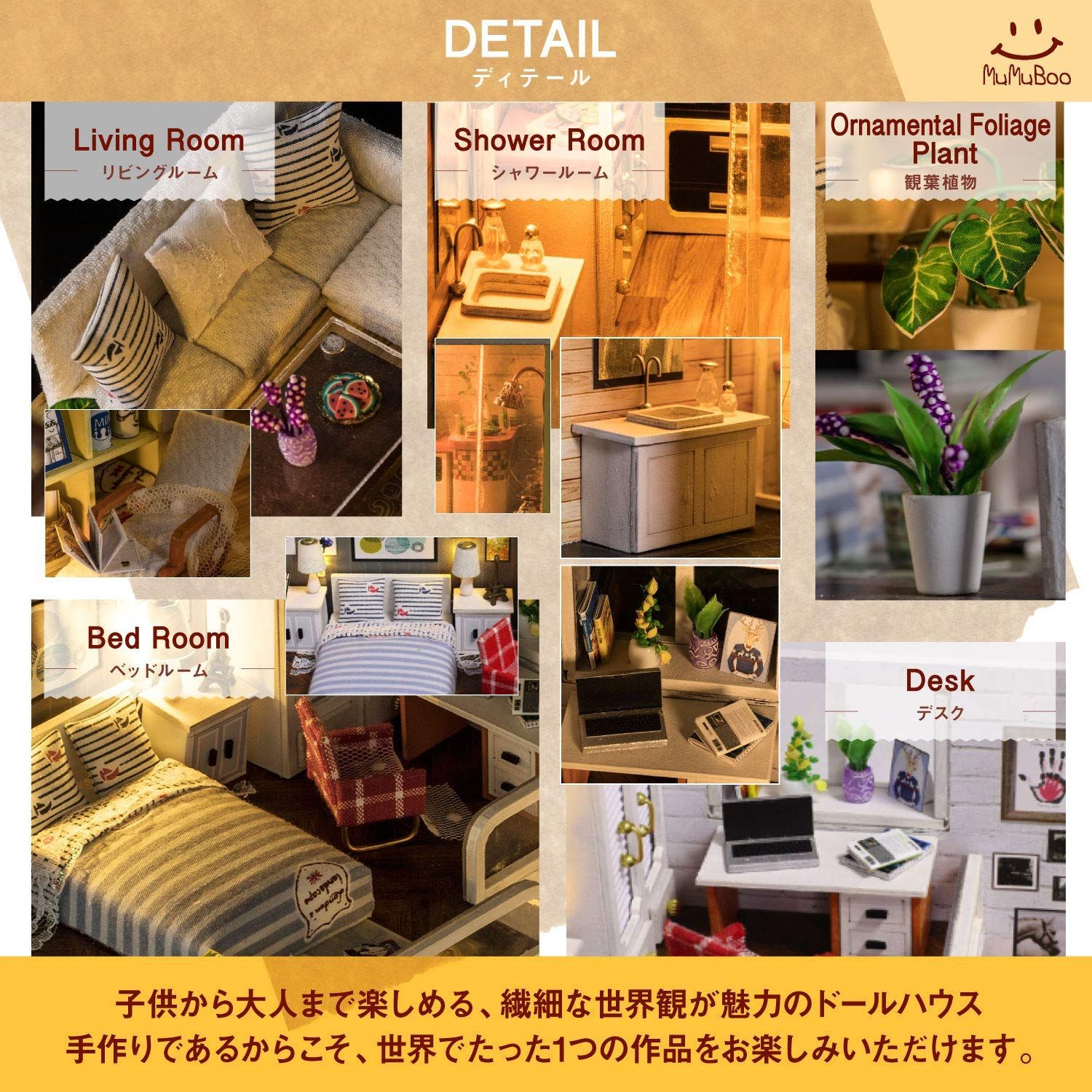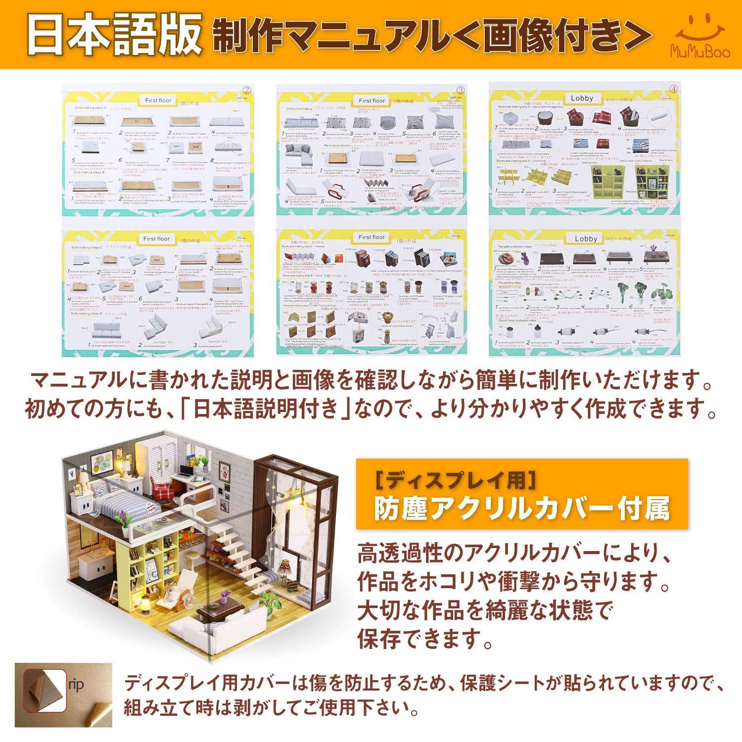 [MuMuBoo] ドールハウス 日本語説明書付 手作り ミニチュアキット ミニチュア家具キット DIY 木製