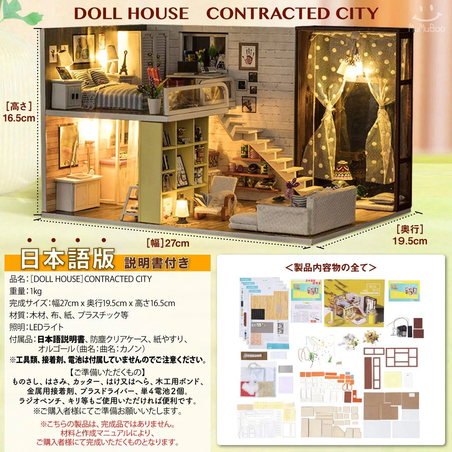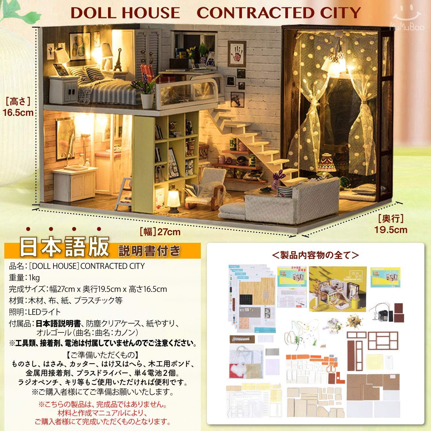 【新着商品】ミニチュア家具キット ミニチュアキット DIY 木製 手作り 【 LEDライト 日本語説明書付 オルゴール 防塵用ディスプレイカバー ドールハウス 付属 】 [MuMuBoo] (CONTRACTED CITY)