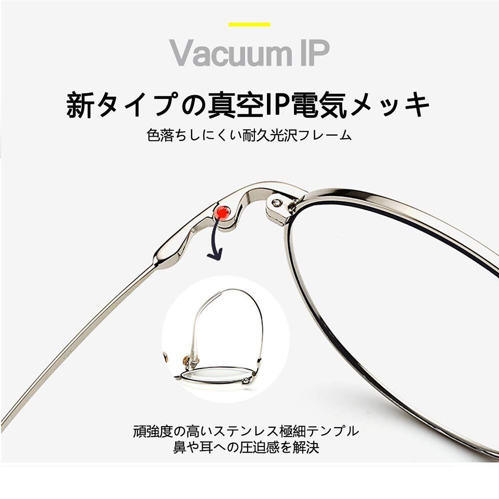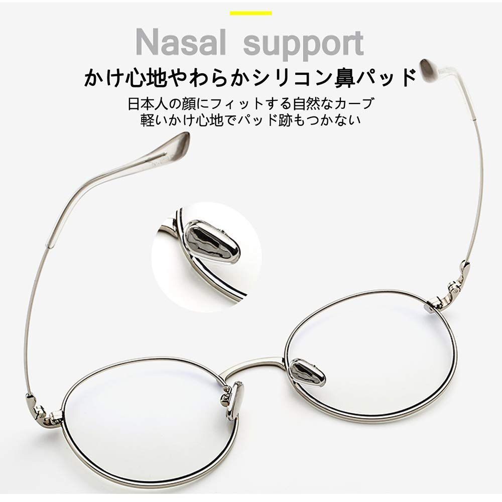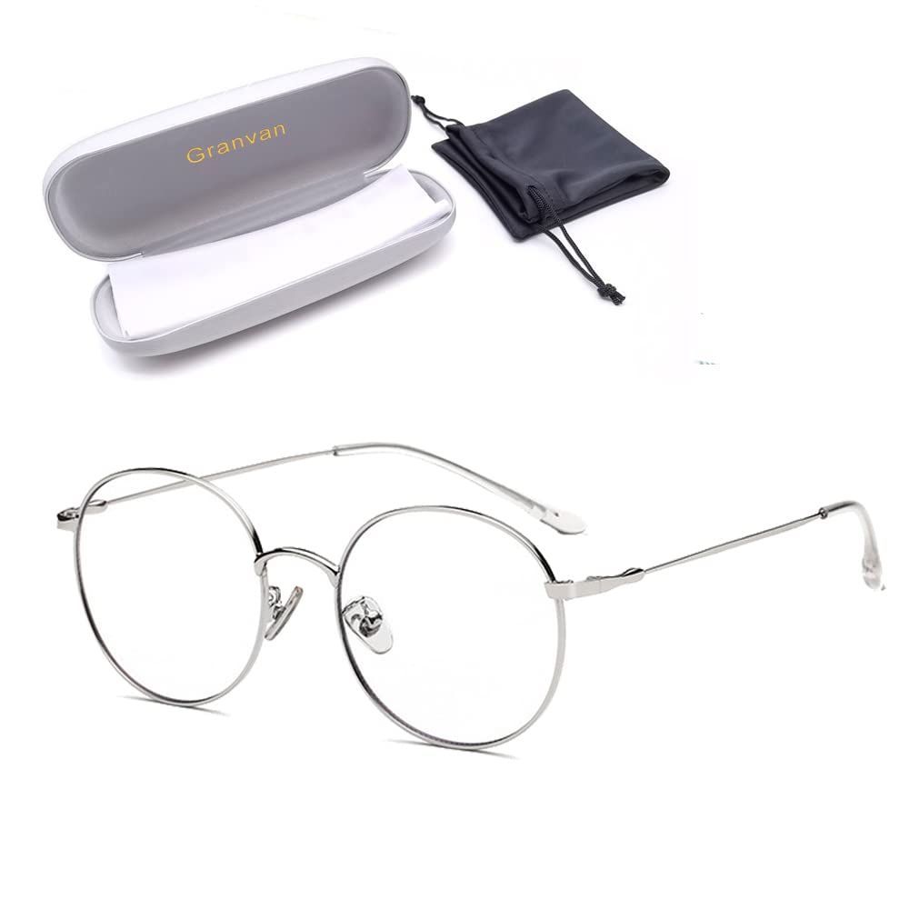 [Granvan] ブルーライトカット メガネ pcメガネ uvカット おしゃれ スマホ用 丸 伊達 超軽量 度なし レディース メンズ ユニセックス ケース付き (03 銀色(シルバー))