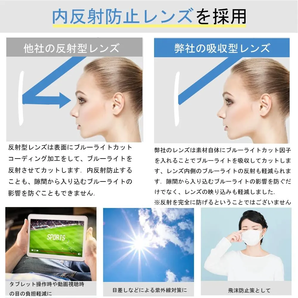 【輻射防止 uvカット】UVカットレンズが付いた紫外線対策メガネで、紫外線カット率は99.9%になる。肌を老化させ、シミ、黄斑、こじわの原因と言われている紫外線とUVをカットできる、紫外線カットメガネとしてもおすすめ. ★