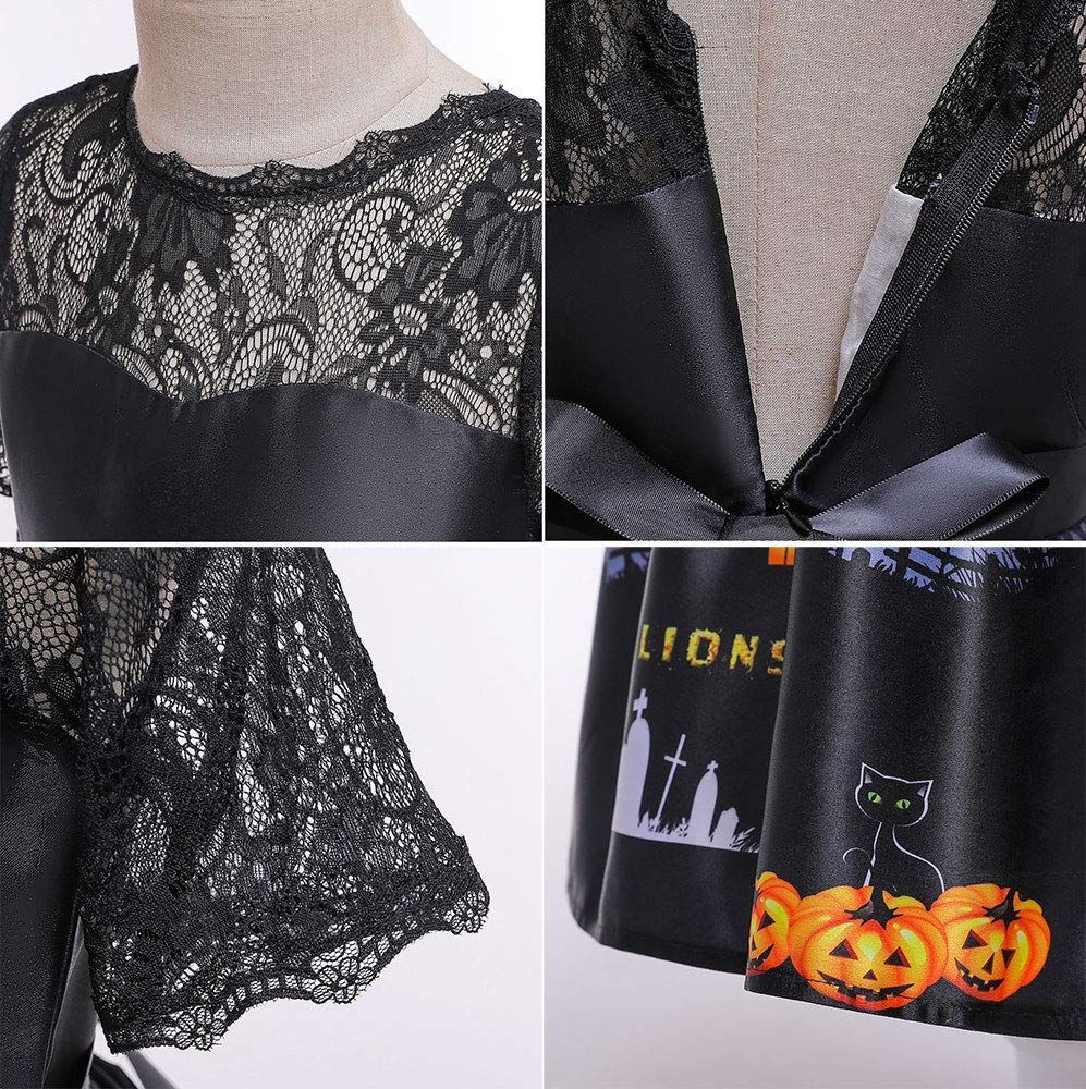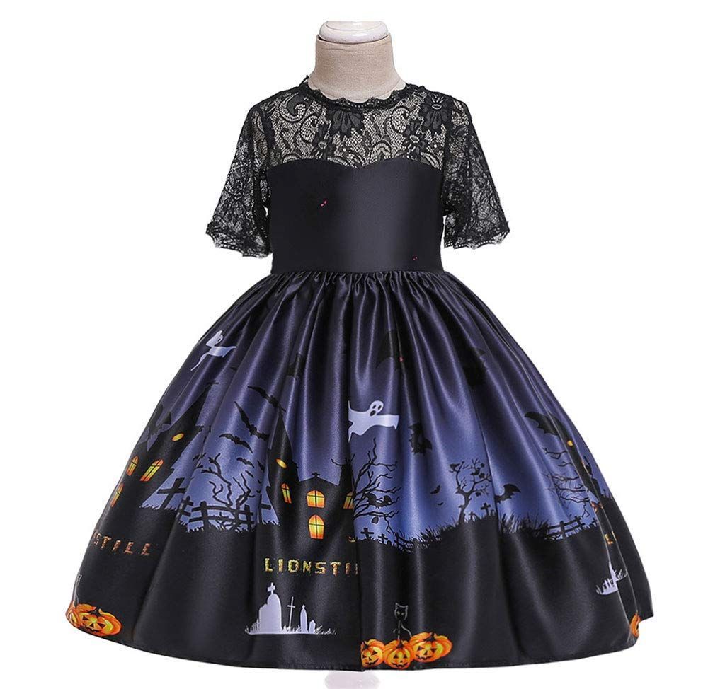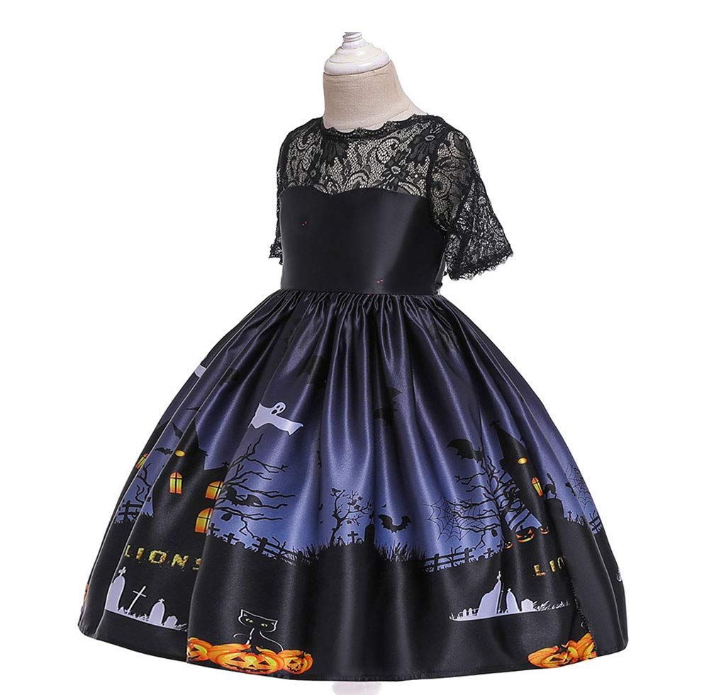 [GenericBrands] ハロウィン 仮装 2点セット 子供 女の子 ドレス+帽子 コスプレ 可愛い コスチューム プリンセスなりきり ベビー 子供 キッズ 魔女 悪魔 ウィッチ ワンピース レース コスプレ 衣装 子供用 キッズドレス 子供ドレス ハロウィンパーティー お化け パーティードレス (ブラック, 110cm)