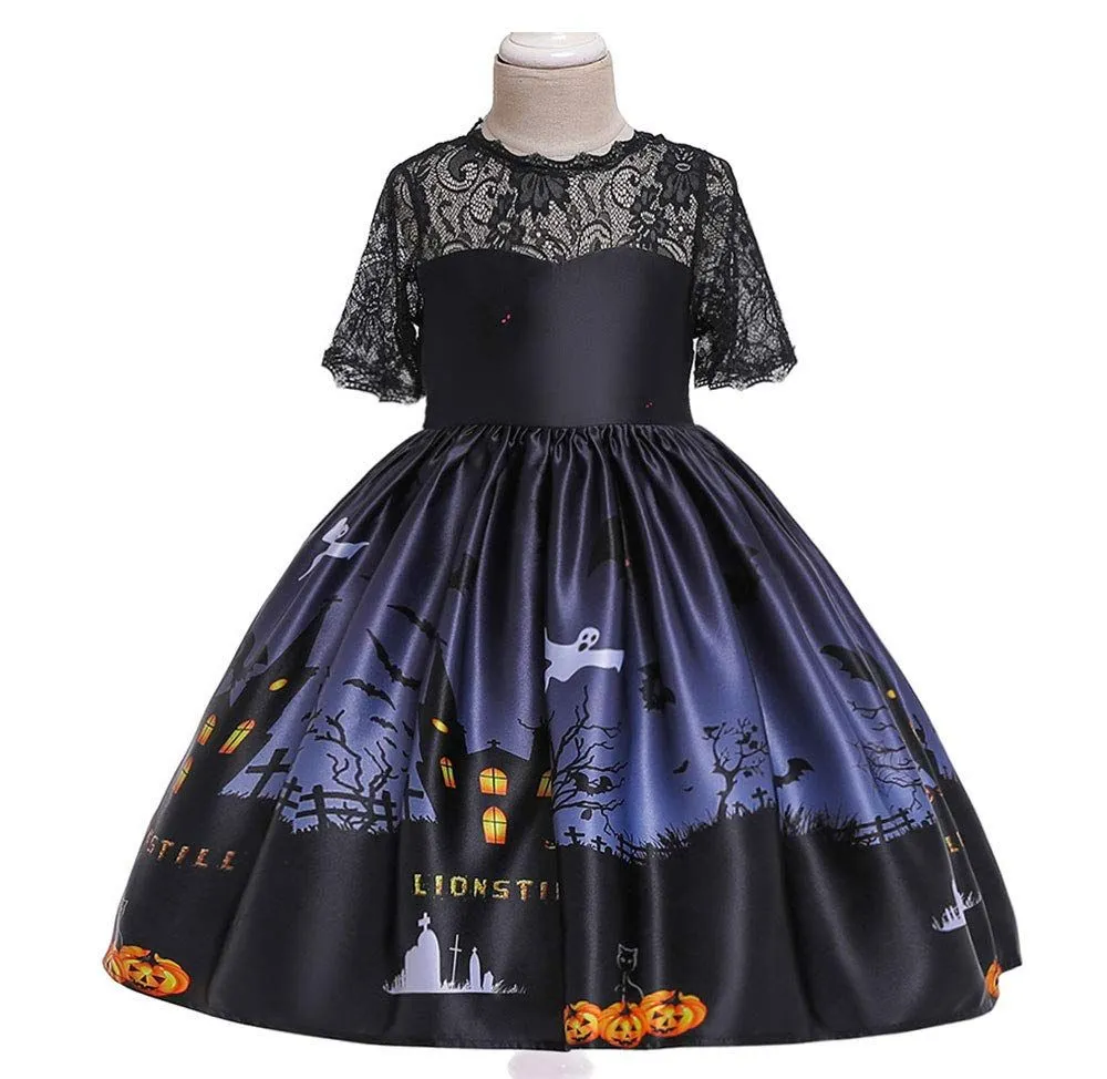 【新着商品】魔女 キッズ 悪魔 子供 ウィッチ 子供 ワンピース ベビー レース プリンセスなりきり コスプレ コスプレ 衣装 コスチューム 子供用 可愛い キッズドレス ドレス+帽子 子供ドレス 女の子 ハロウィンパーティー 2点セット お化け 仮装 パーテ
