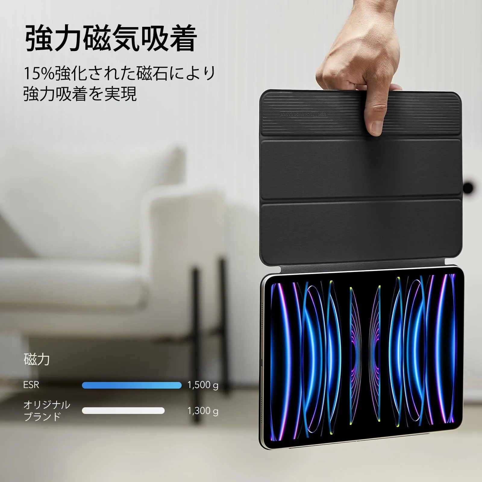 【強力マグネット吸着】:強力なマグネットがケースとタブレットを強力に固定します
