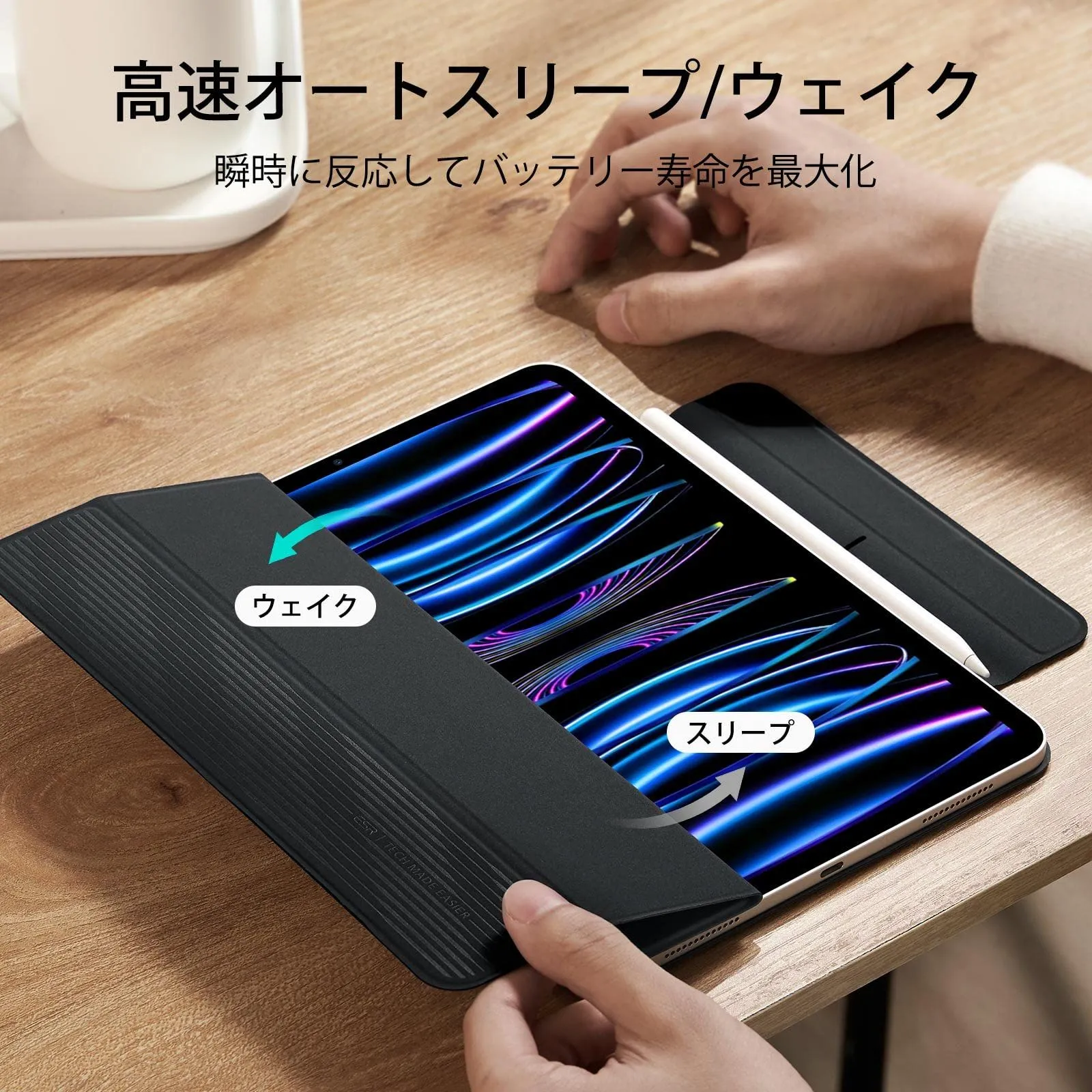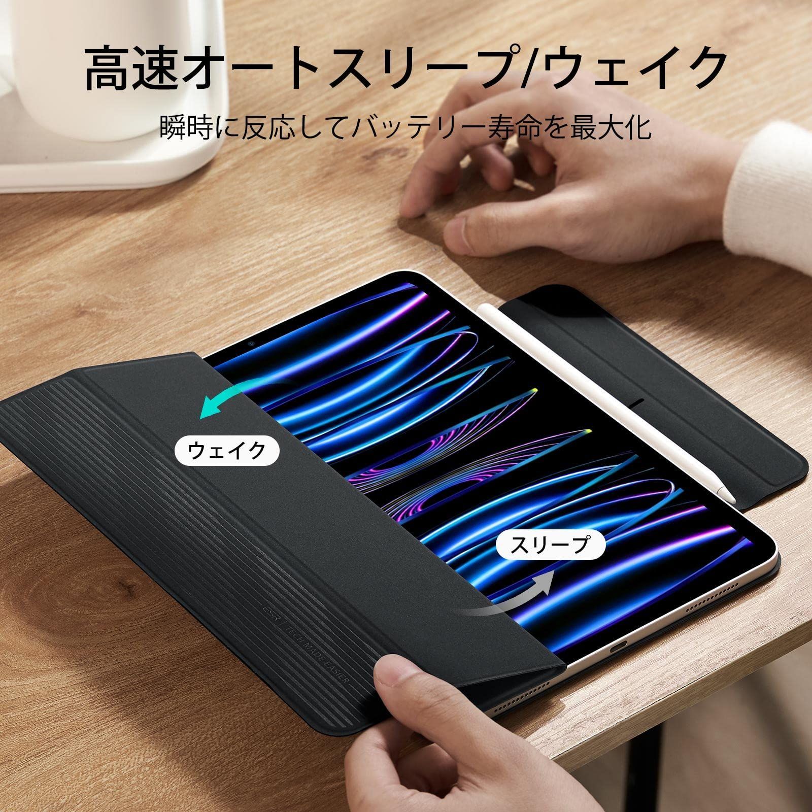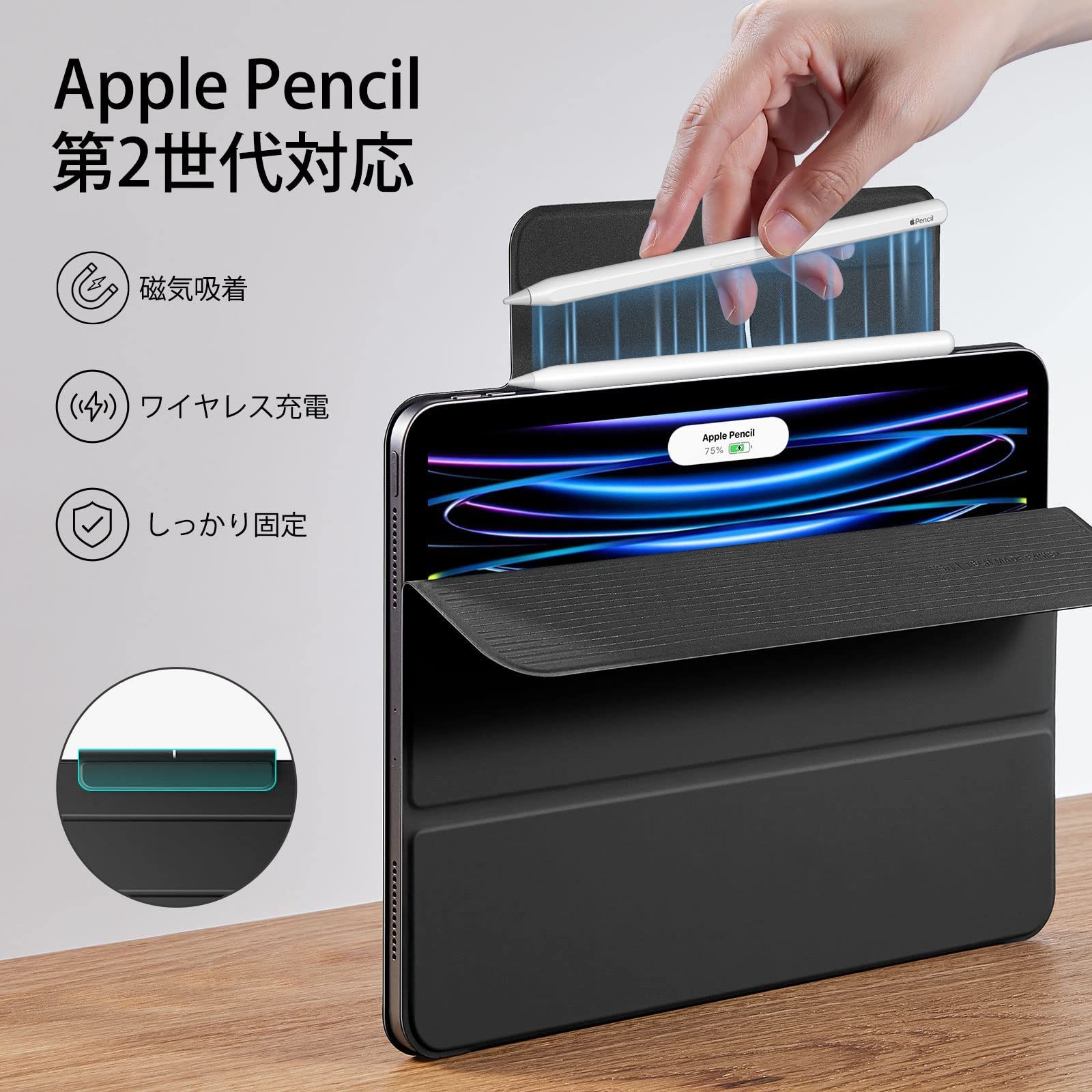 【数量限定】Reboundシリーズ オートスリープ/ウェイク機能 三つ折スタンド 2対応 ブラック Pencil マグネット吸着式 第4/3/2/1世代(2022/2021/2020/2018)専用 ケース 11インチ Pro iPad ESR