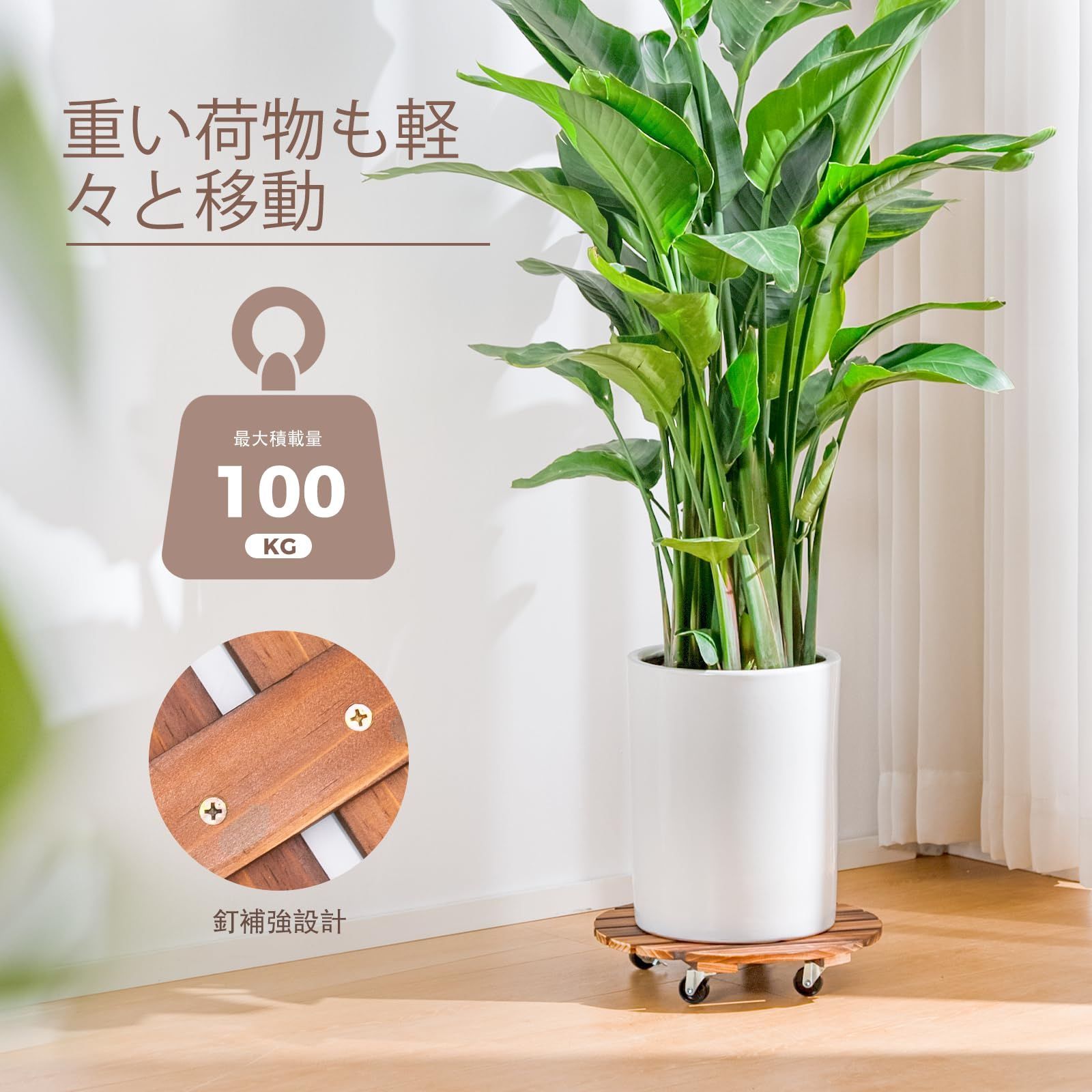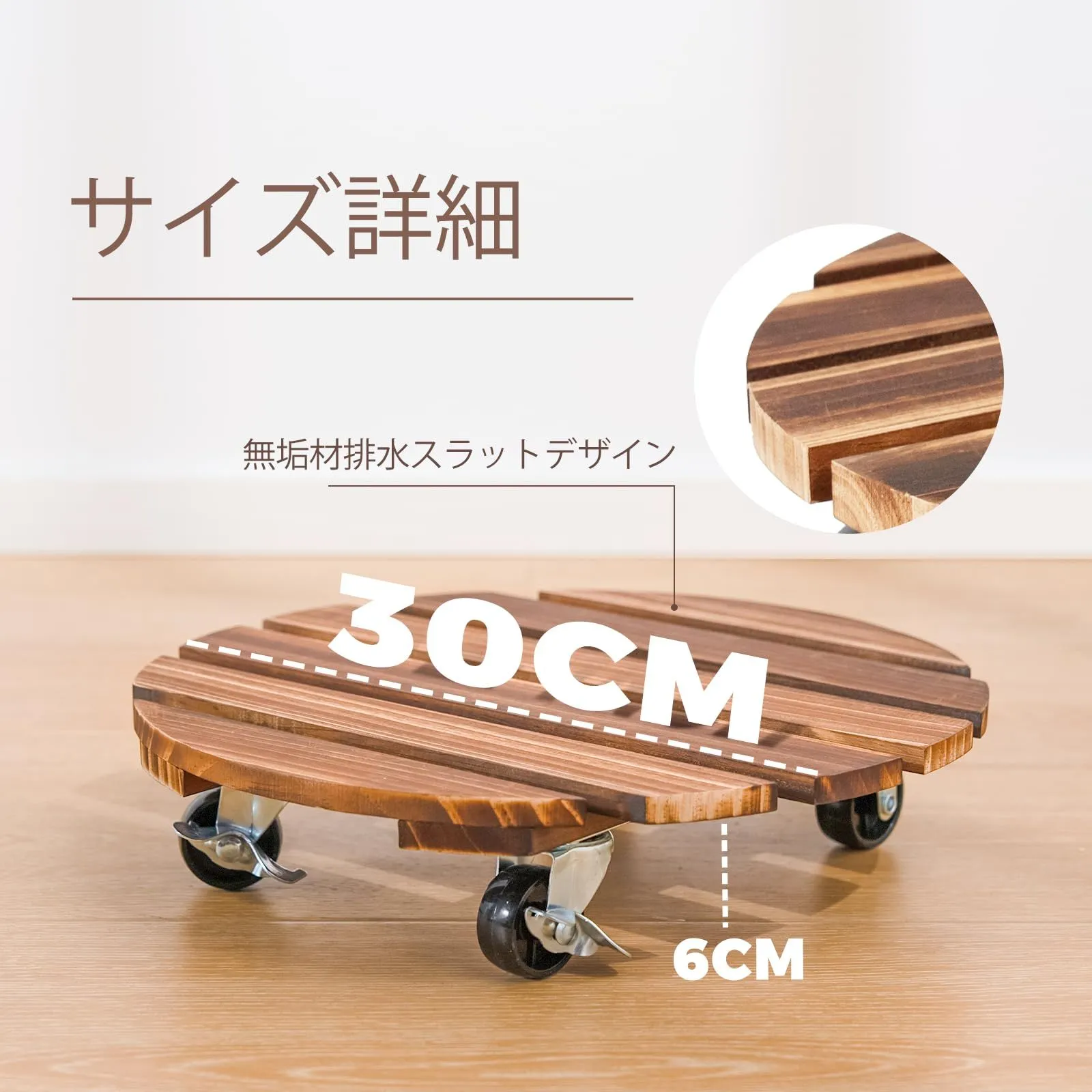 最適30cm幅サイズ:30cm直径のキャスター付き観葉植物 スタンドは、様々なサイズの植え盆に対応。購入後も盆のサイズに合わない心配はありません