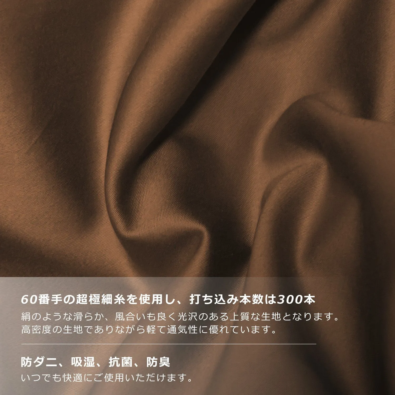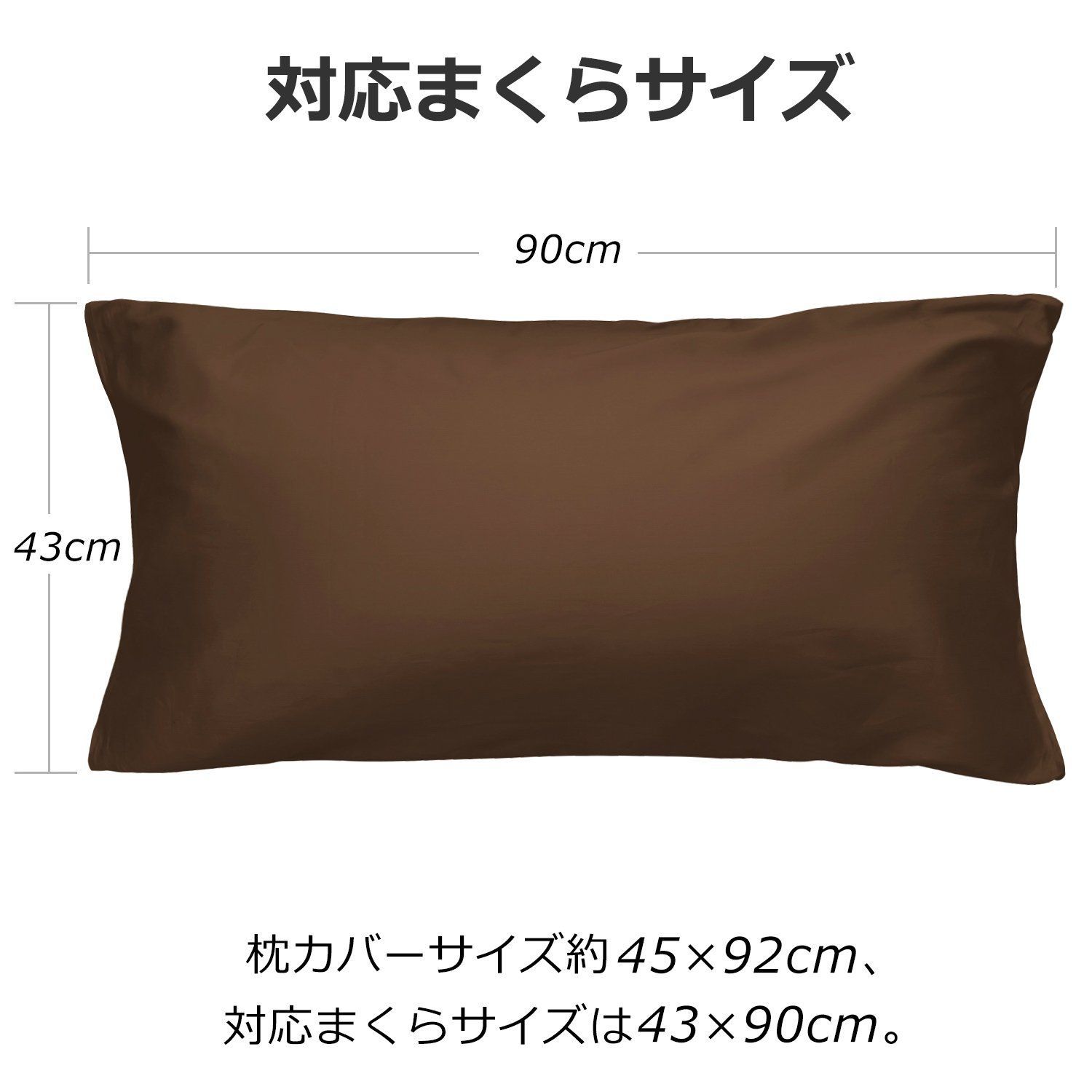 枕カバー 高級綿100% サテン織り 300本高密度生地 防ダニ 抗菌 防臭 ホテル品質 封筒式 滑らか 柔らかい ピローケース 選べる9色 4サイズ 無地 ブラウン セミロング 43×90cm