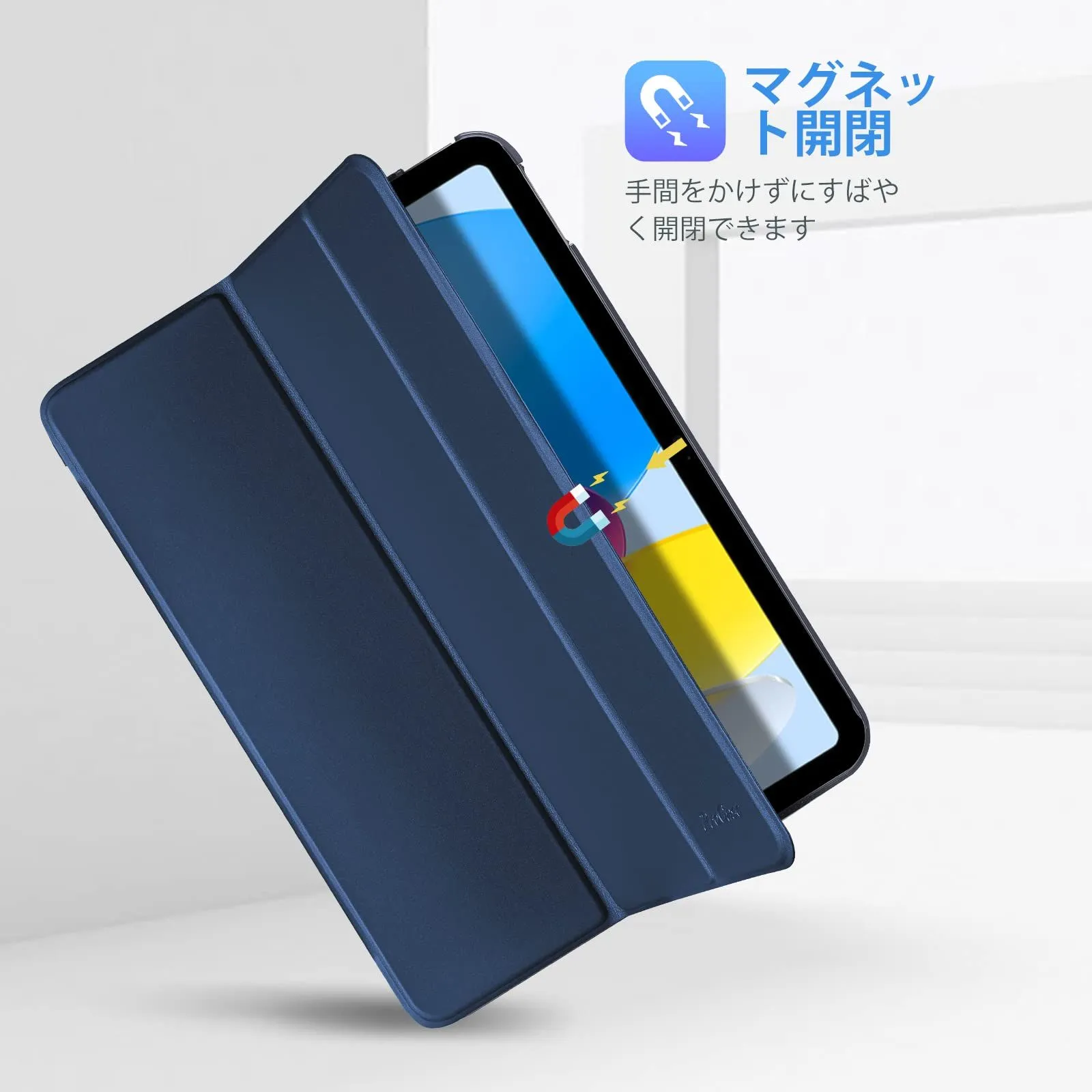 【即日発送】スタンド スマートカバー(ダークブルー) 三つ折り 耐衝撃 軽量 2022通用 2025/10.9インチ iPad(A16)11インチ ケース 11世代/10世代 iPad ProCase