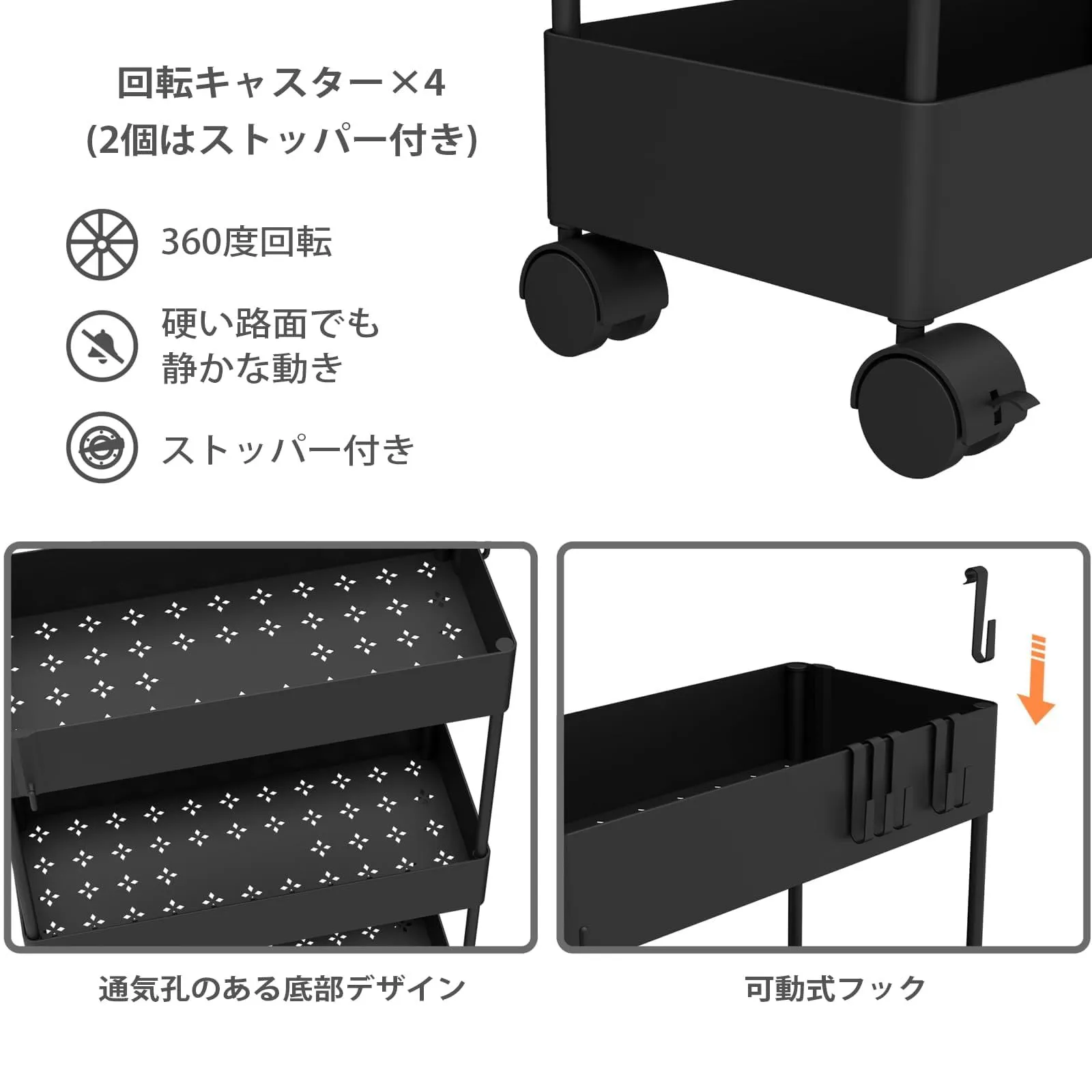 【メッシュ中空デザイン】SIUSA ワゴンの底部はメッシュ中空デザインを採用しており、使用中に水が溜まるのを防ぎ、通気性にも優れています。キッチン、トイレ、ランドリールーム、寝室、リビング、オフィスなどの場所に最適です。