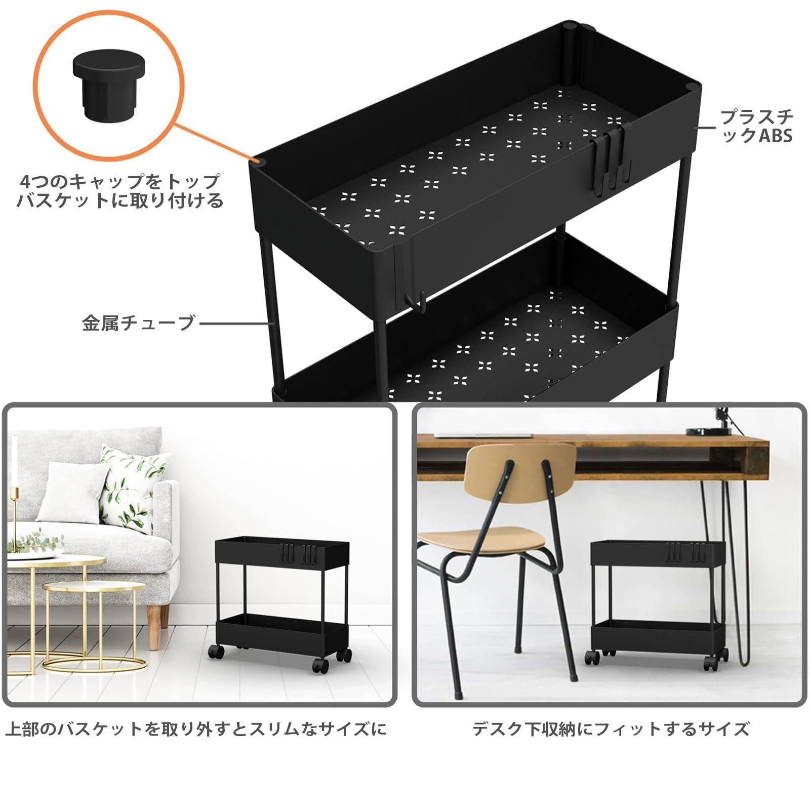 【頑丈な設計】キッチンワゴンは高品質のプラスチックと丈夫な金属チューブで組み立てられており、バスケット1枚あたり最大10kgの重量を支えることができます(安定性を確保するため、下段は上段よりも重量を支える必要がありますのでご注意ください)。