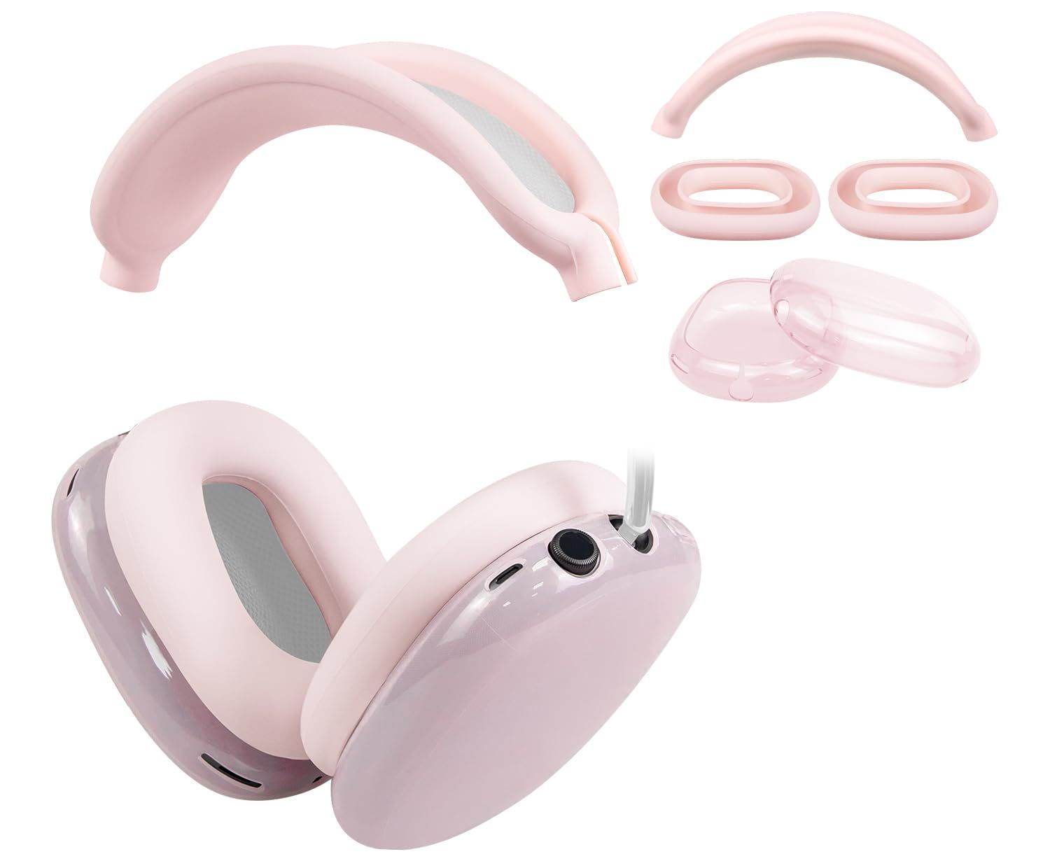 SOULWIT 保護アクセサリー AirPods Max 用 TPU カバー + ヘッドバンド カバー + イヤーパッド ケース 多方面保護 キット キズ防止 汗に強い 手軽に洗える 防塵 軽量 薄型 (ピンク)