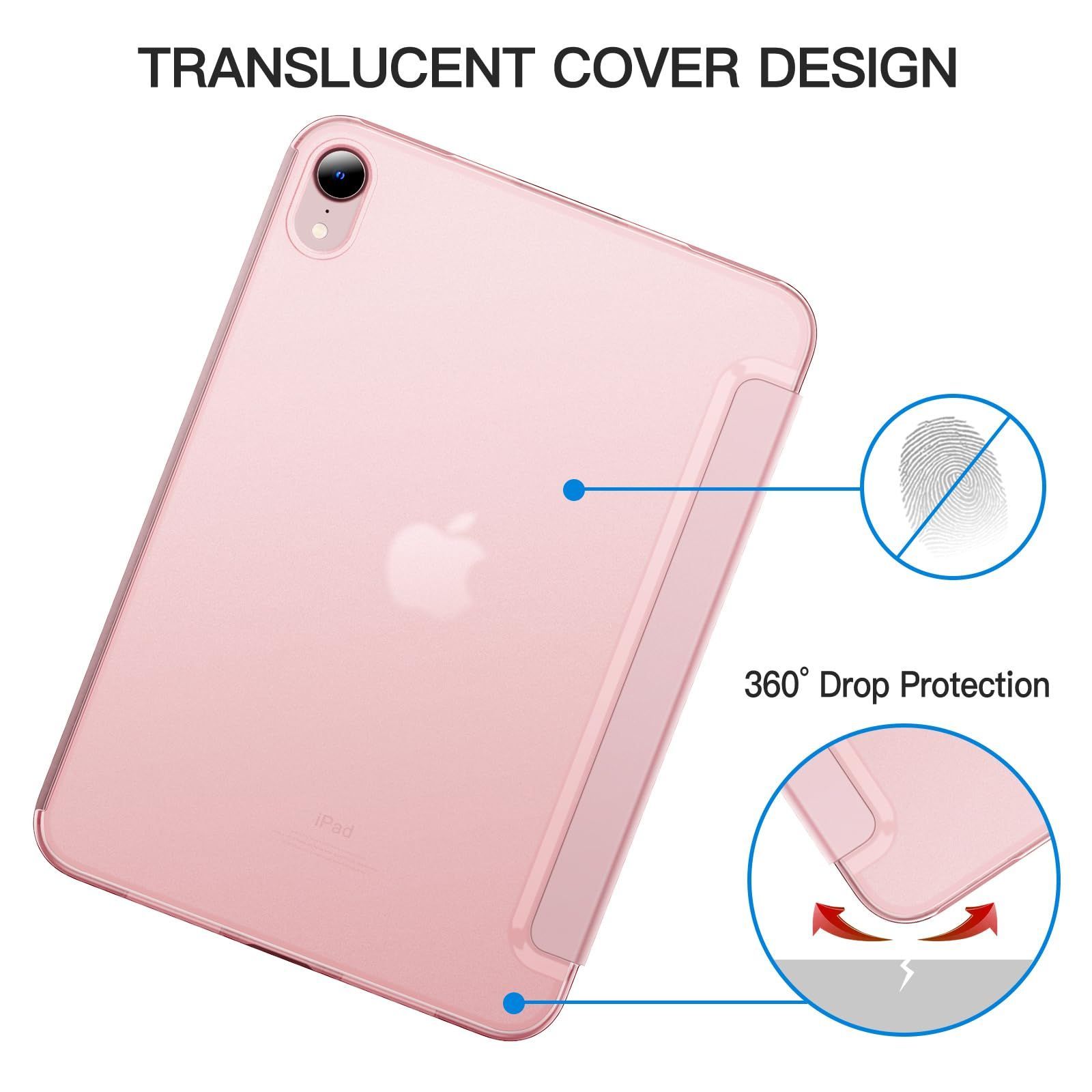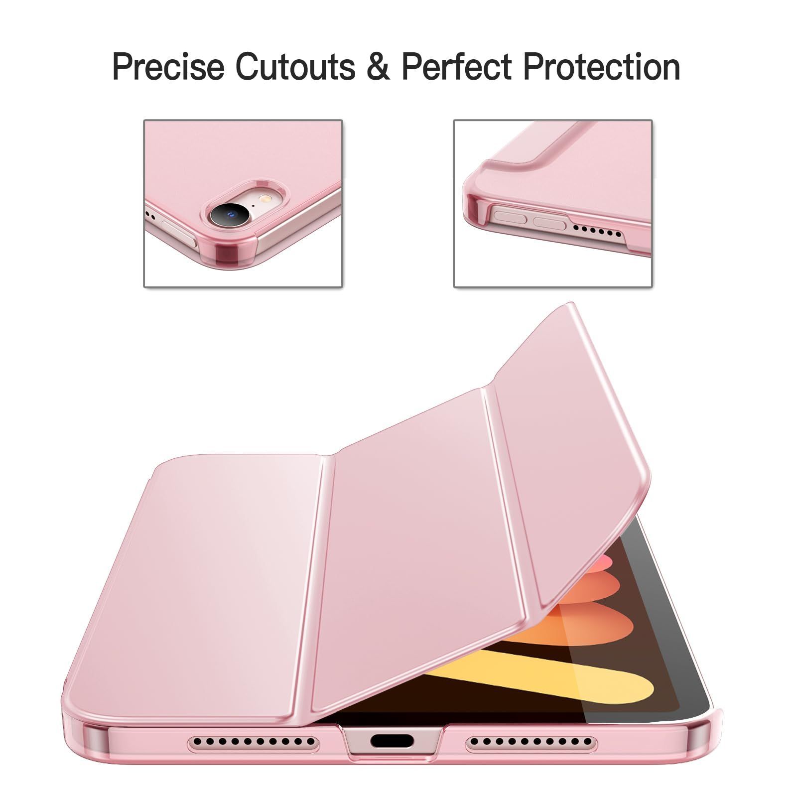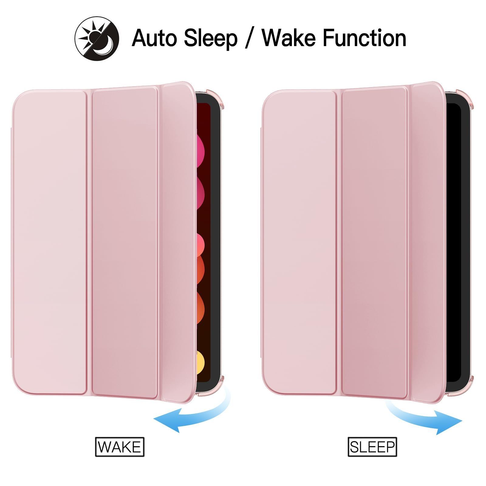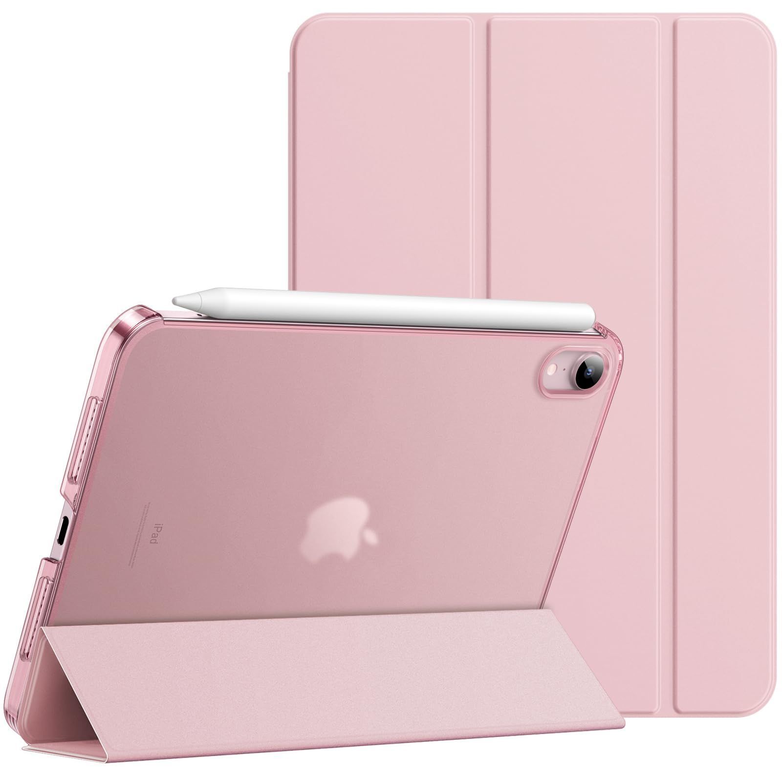 JETech iPad mini (A17 Pro 2024 モデル、第7世代) / mini 6 ケース (8.3インチ、2021モデル、第6世代)用 スリムスタンドハードバック ウェイクアップ/オートスリープ機能付き タブレットカバー (ピンク)