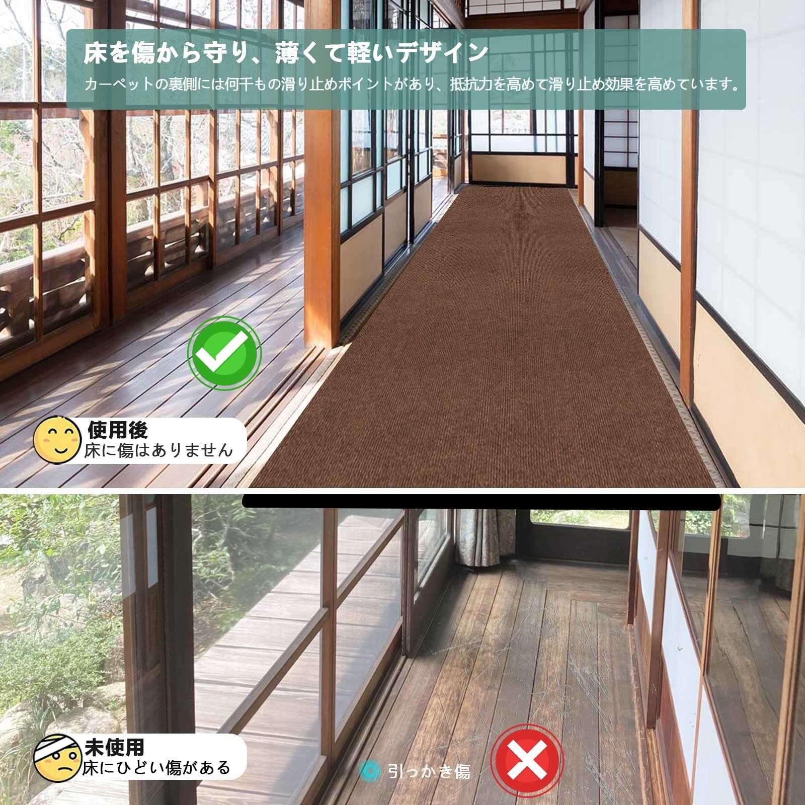 廊下敷きカーペットラグ ラグマット 台所マット ロング60×600cm JAYFAN 廊下 カーペット玄関 マットフローリングマットキッチンマット PU 4 mm厚 拭ける 踏み心地いいラグ 滑り止め マット洗える 吸着マット床保護マットキッチン、寝室、居間などに