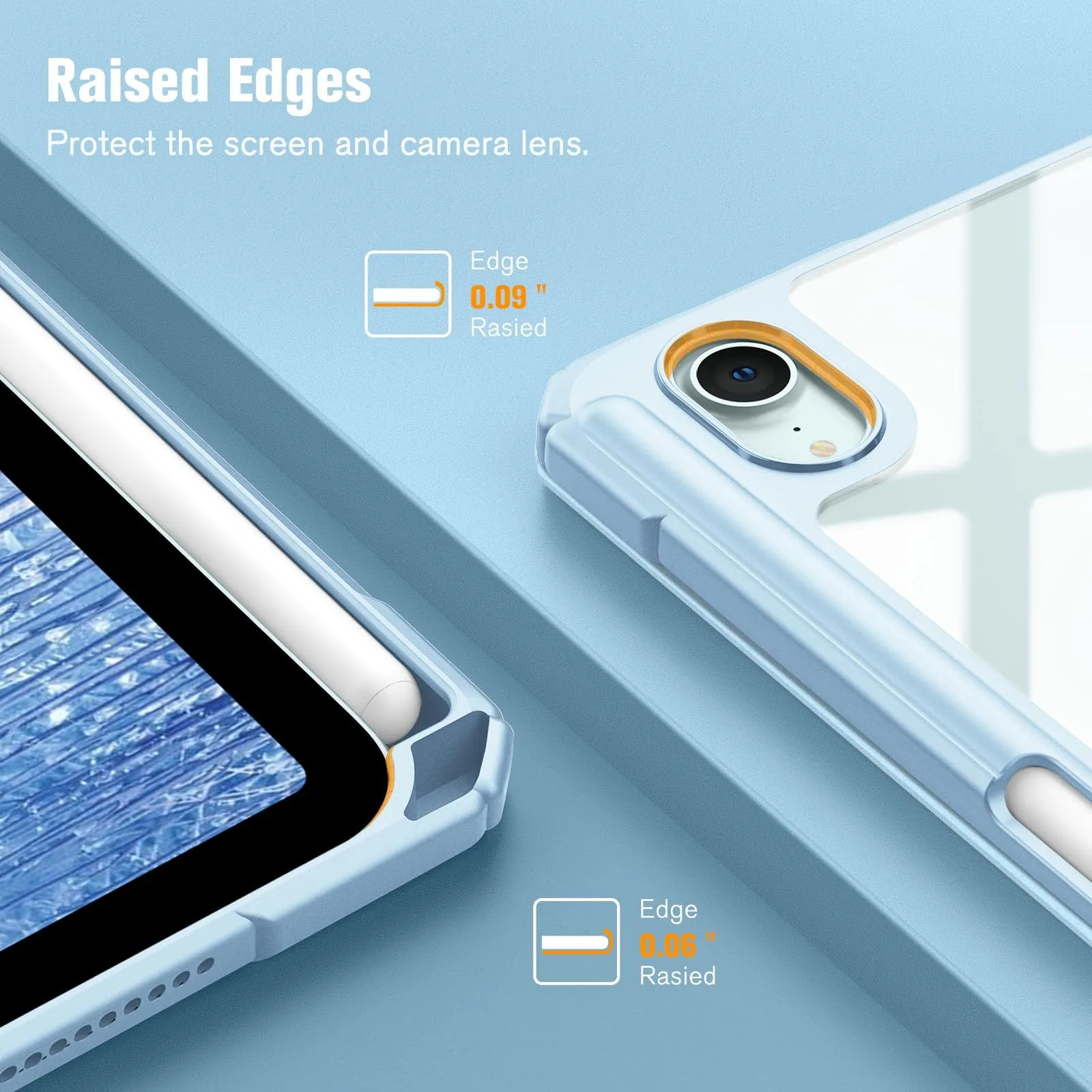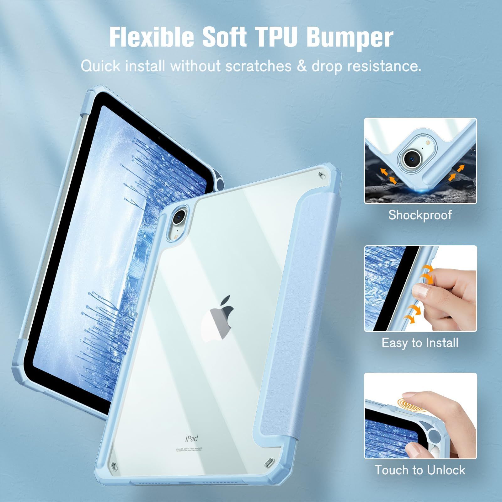 Fintie for iPad Mini 7 ケース (A17 Pro 2024) / iPad Mini 6 ケース 2021 8.3インチ 第7/6世代 透明バックカバー Pencil 収納可能 Pencil ワイヤレス充電対応 三つ折スタンド スリープ機能 軽量 薄型 傷つけ防止 PU合成レザー TPU (ブルー)
