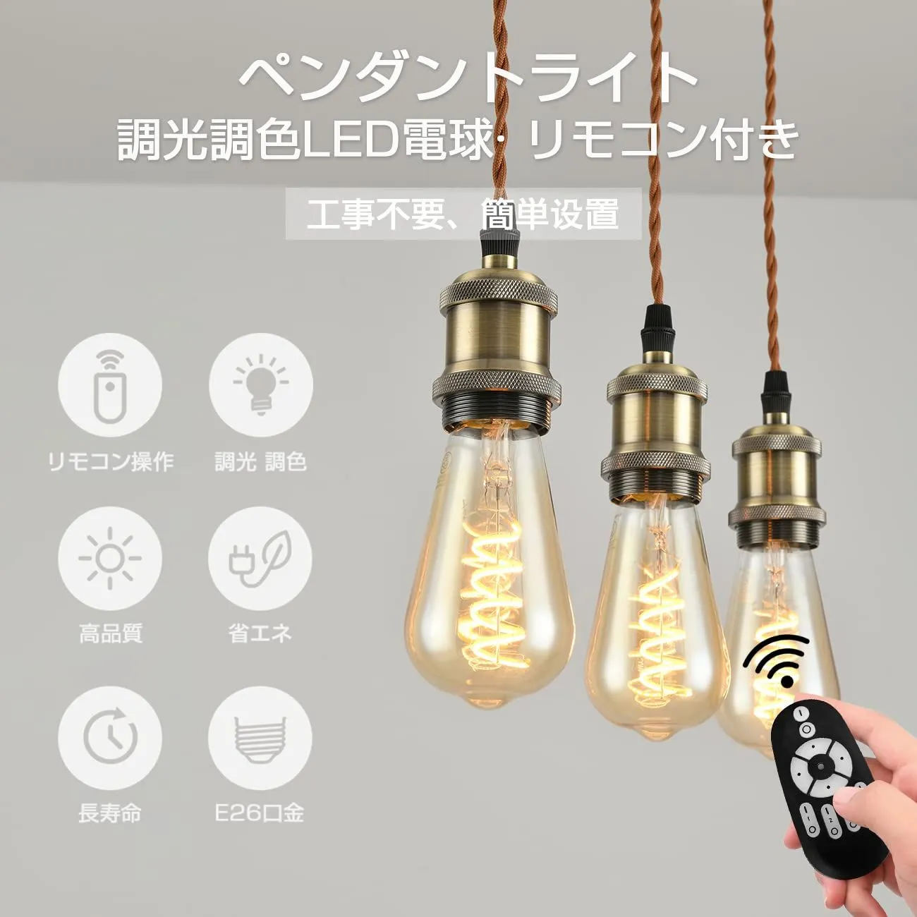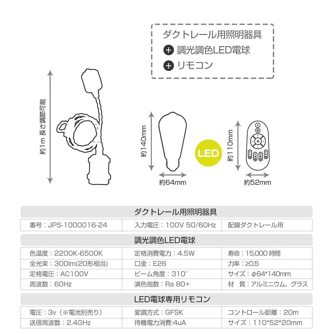 【器具+LED電球】器具はE26口金、コード長さは100cm調節可能です。LED電球は300LM(調光可能) 、色温度2200K-6500Kです。寿命:15,000時間。パッケージ:3個セット+リモコン