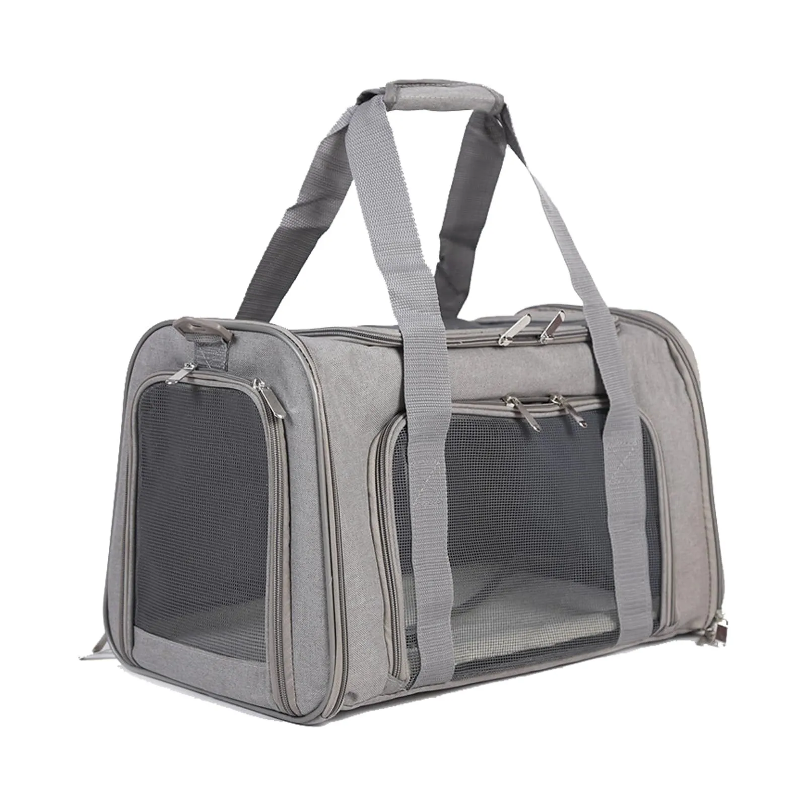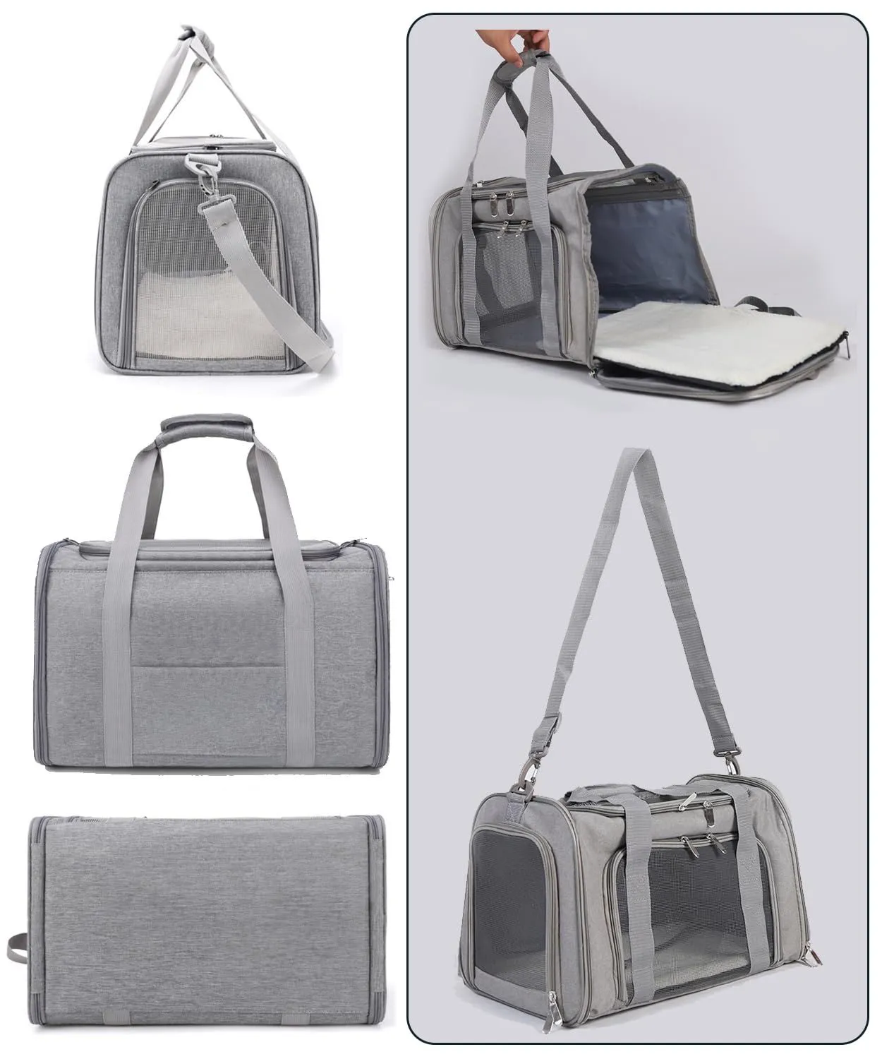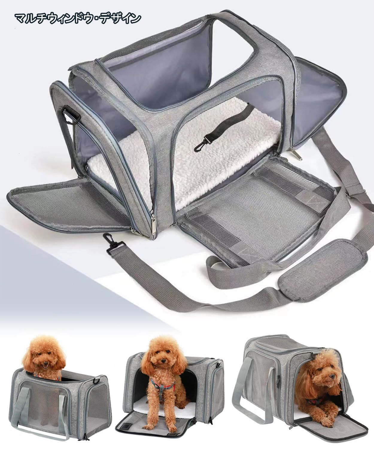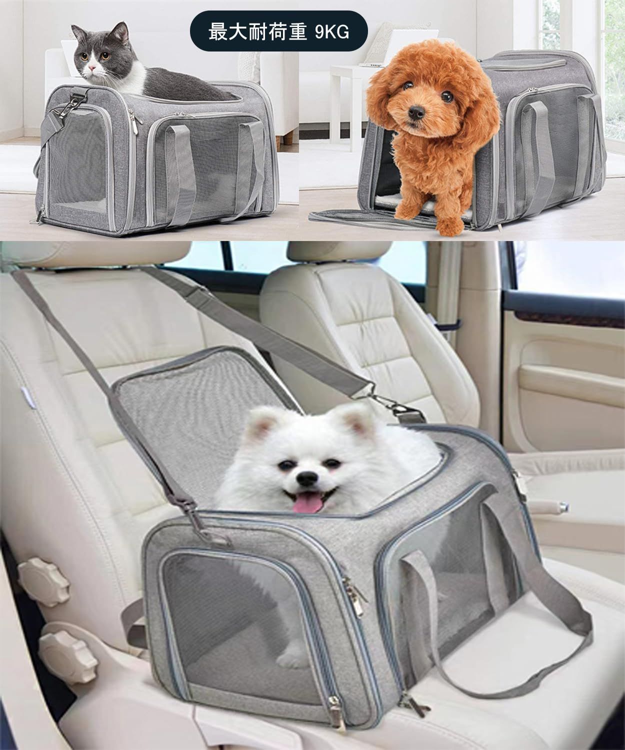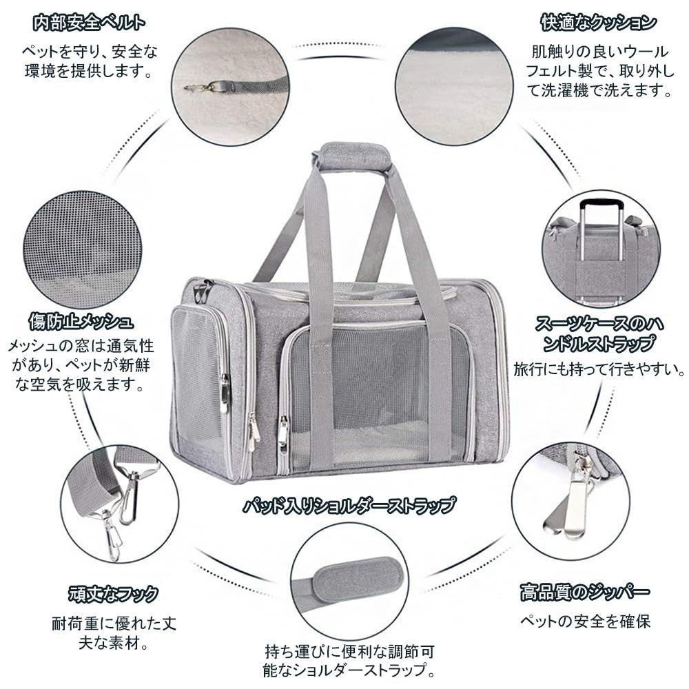 BTtime ペットキャリーバッグ 猫用キャリングバッグ 折りたたみ式 ペットキャリー 中・大型猫用・小型犬 飛び出し防止 傷防止 ベルト脱着可 洗えるマット 通気性 軽量 大容量 耐荷重9KG お出かけ/旅行/ドライブ/防災/避難用 (グレー)