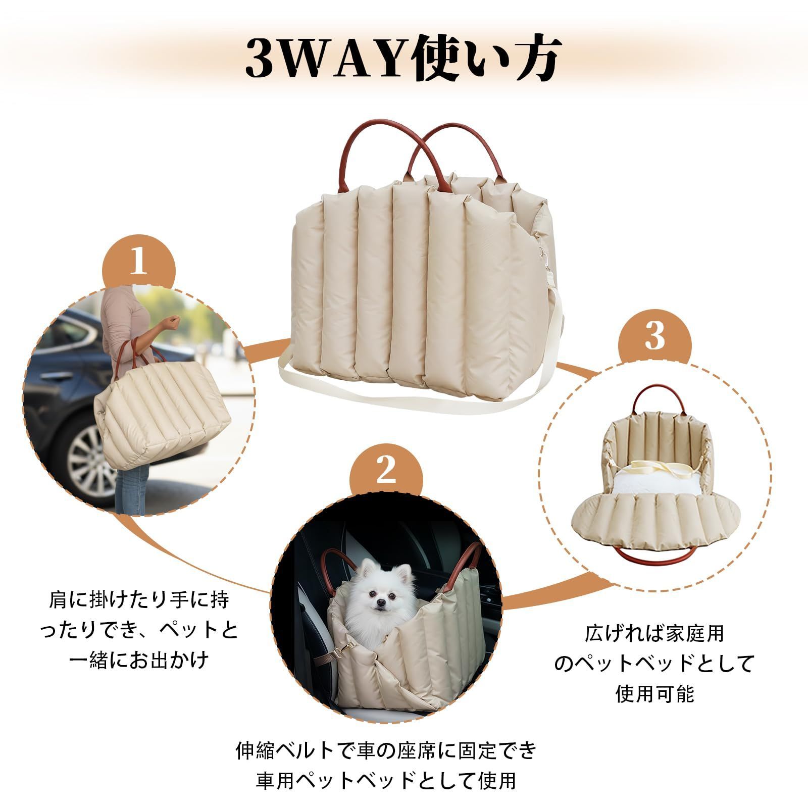 ペットキャリーバッグ 小型犬 猫用 キャリーケース 3WAY使い方 犬用 ドライブベッド ソフトタイプ 軽量 折りたたみ可能 通気性 メッシュ お出かけ 車載 旅行 通院 手提げ 肩掛け 両用 ペットバッグ