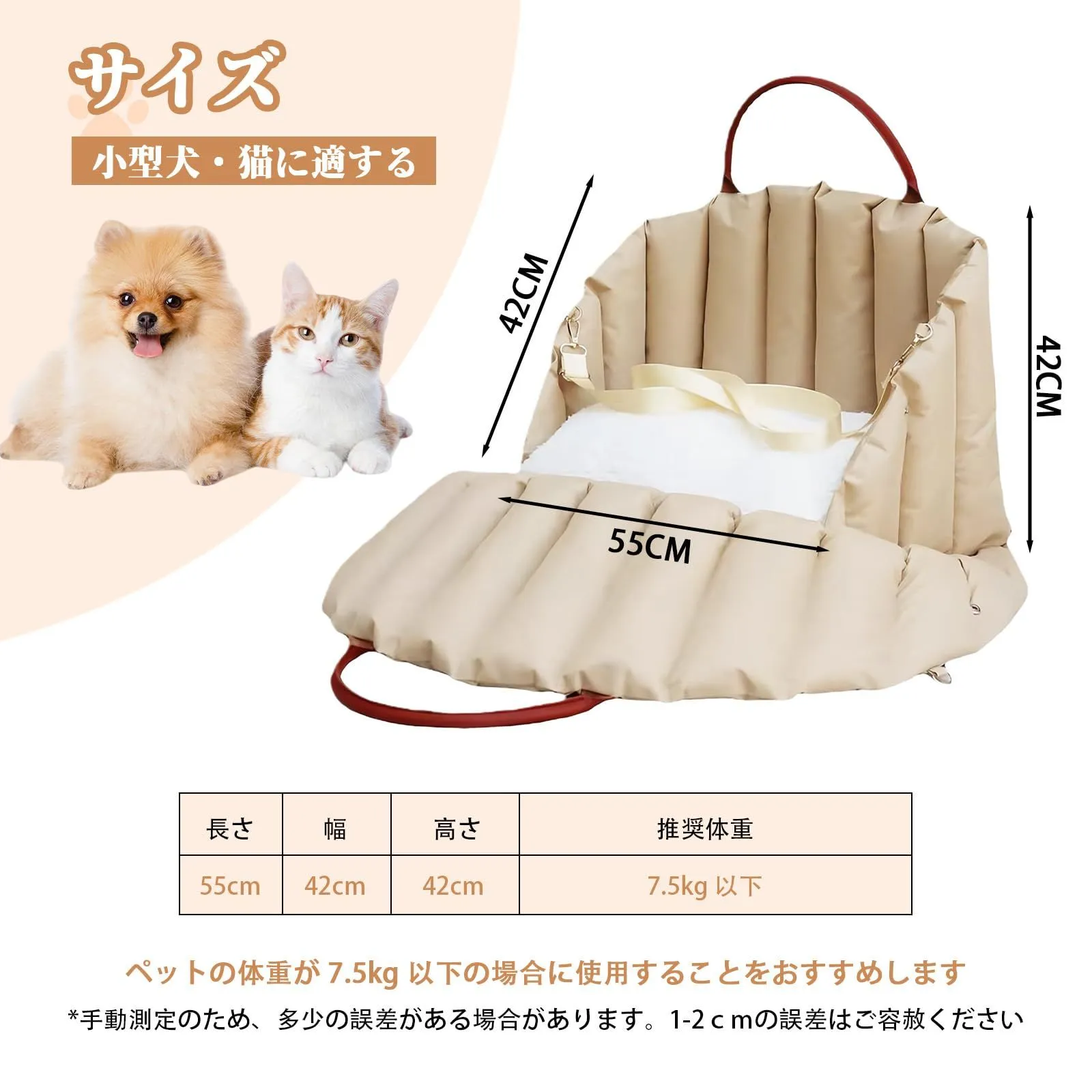 【小型犬・猫用キャリーバッグ】 小型犬や猫にぴったりのサイズ設計で、愛犬や愛猫を快適かつ安全に持ち運びできます。動物病院への通院、旅行、ショッピングなど幅広いシーンで活躍。お出かけの際に必要な必須アイテムです。