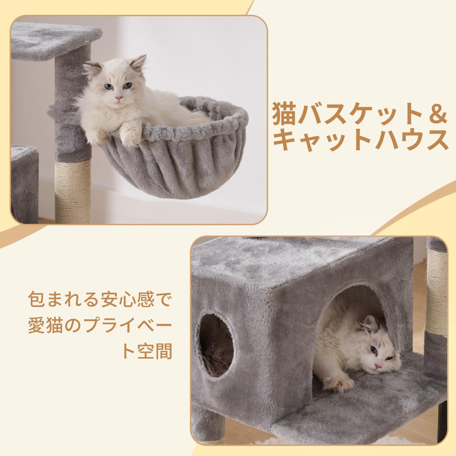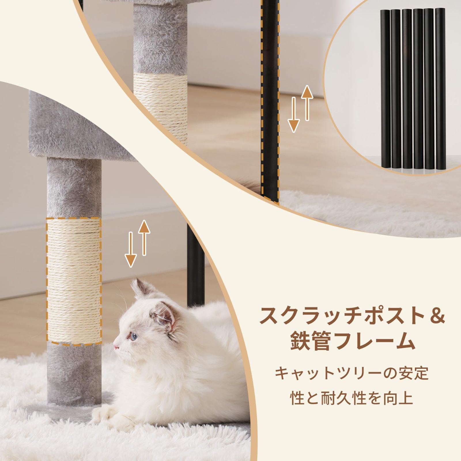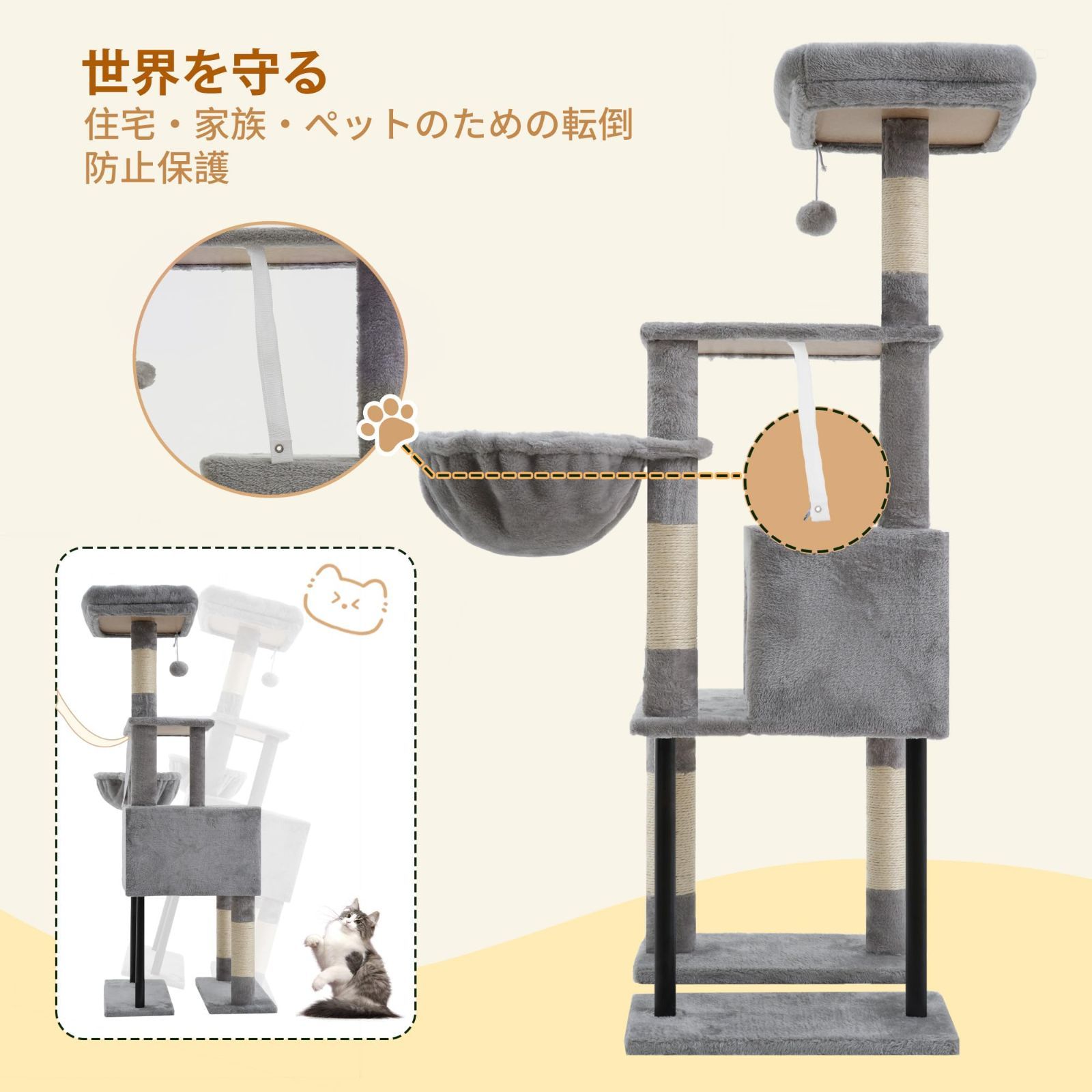 【二重のしっかりした転倒防止】二重の底板は科学的な設計で荷重を分散し、調節可能な転倒防止ベルトでしっかり固定することができ、キャットタワーの安定性と猫の安全をします。