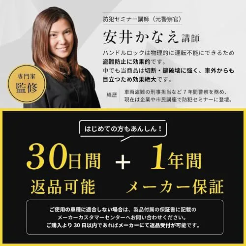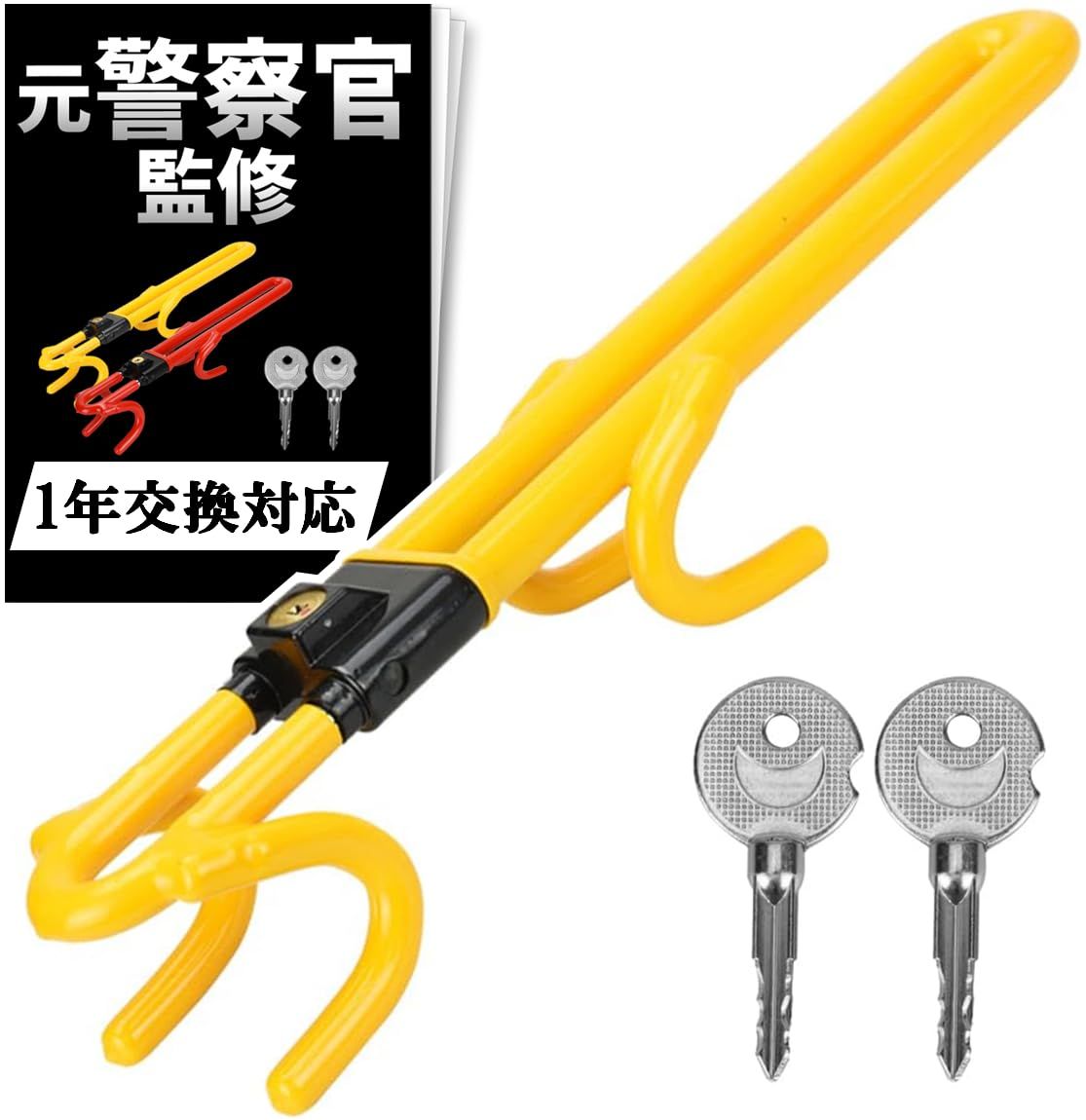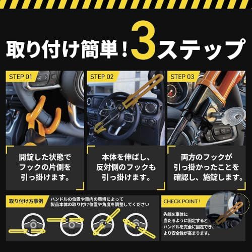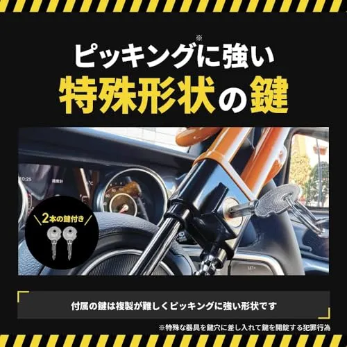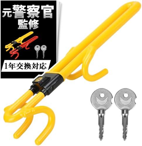 【元警察官_防犯プロ監修_簡単5秒取付】 ハンドルロック 車 最強 盗難防止 リレーアタック対応_スペアキー付き(イエロー) 国内発送