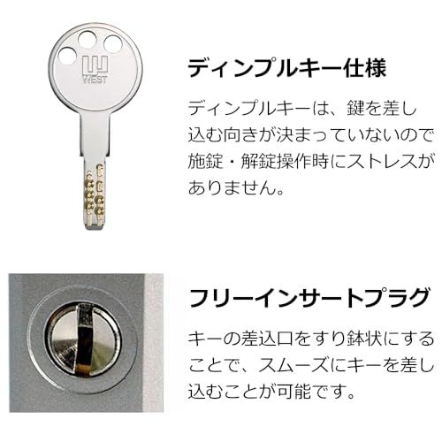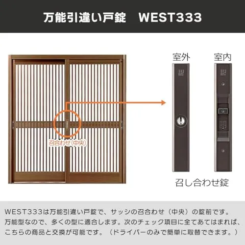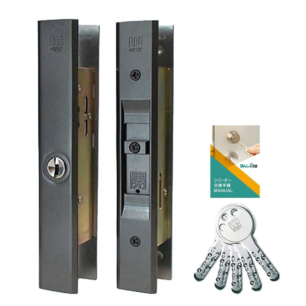 WEST(ウエスト) 引き違い戸 錠 WEST333 引き戸 真ん中 鍵 ロック 交換 後付け 玄関ドア 召し合わせ部 ディンプル キー5本 ブロンズ 交換手順書付き 国内発送