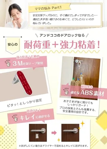 【舐めても安心なBPAフリー・ABS樹脂素材】 万が一赤ちゃんやペットが舐めてしまっても安全な、環境に優しい「ABS樹脂」素材(BPAフリー)を採用しました。耐久性・耐衝撃性が高く壊れにくいため、元気なペットがいるご家庭でも長くご愛用いただけます。出産祝いや、新築祝い、ペットを飼い始めたご友人へのギフトとしても選ばれているチャイルドロックです。
