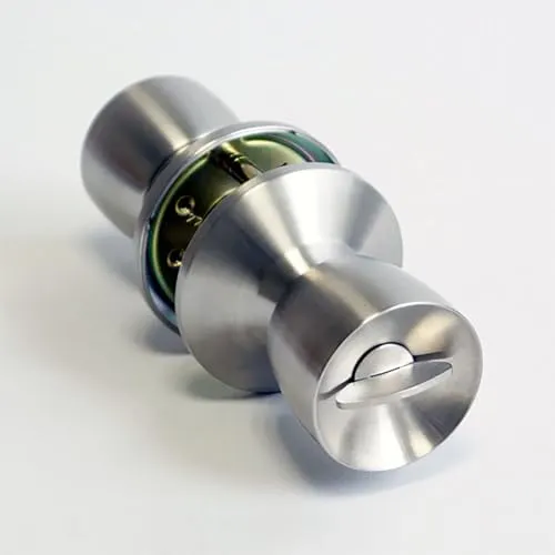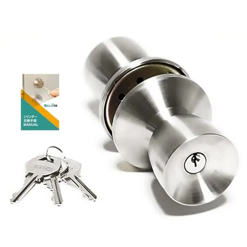 ALPHA( アルファ )の鍵付きの交換ドアノブです。この錠前は玄関ドアや勝手口によくついています。年数が経って、ドアノブが回りにくい、ロックしにくいという症状が出たら交換の合図です。
