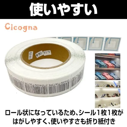 [Cicogna] 防犯タグ シール ステッカー 1000枚セット 4*4cm RF方式 消去式 8.2MHz 大容量 万引き対策 バーコード 国内発送