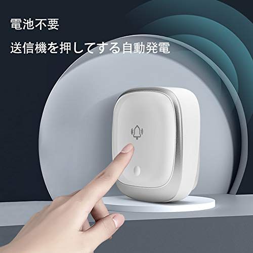 ワイヤレスチャイム 玄関チャイム 電池不要 自動発電 音と光で呼び出しチャイムセット 7色led 4段階音量調節38曲選択 防水防塵 介護呼び鈴ドアベル 最高200M無線範囲 送信機1個 受信機2個 国内発送